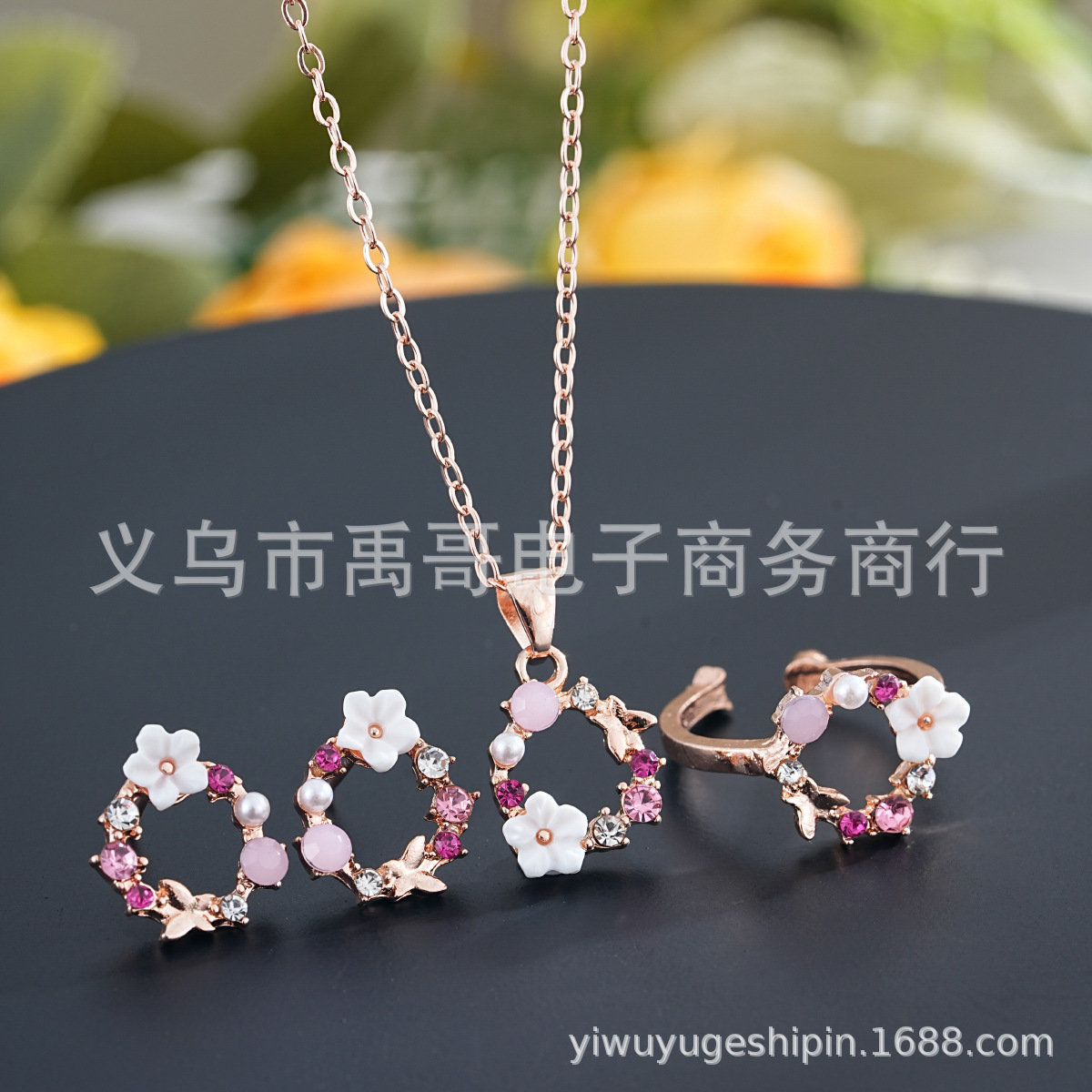 Temuがよく売れています。ラッキーな花のアクセサリーセットです。