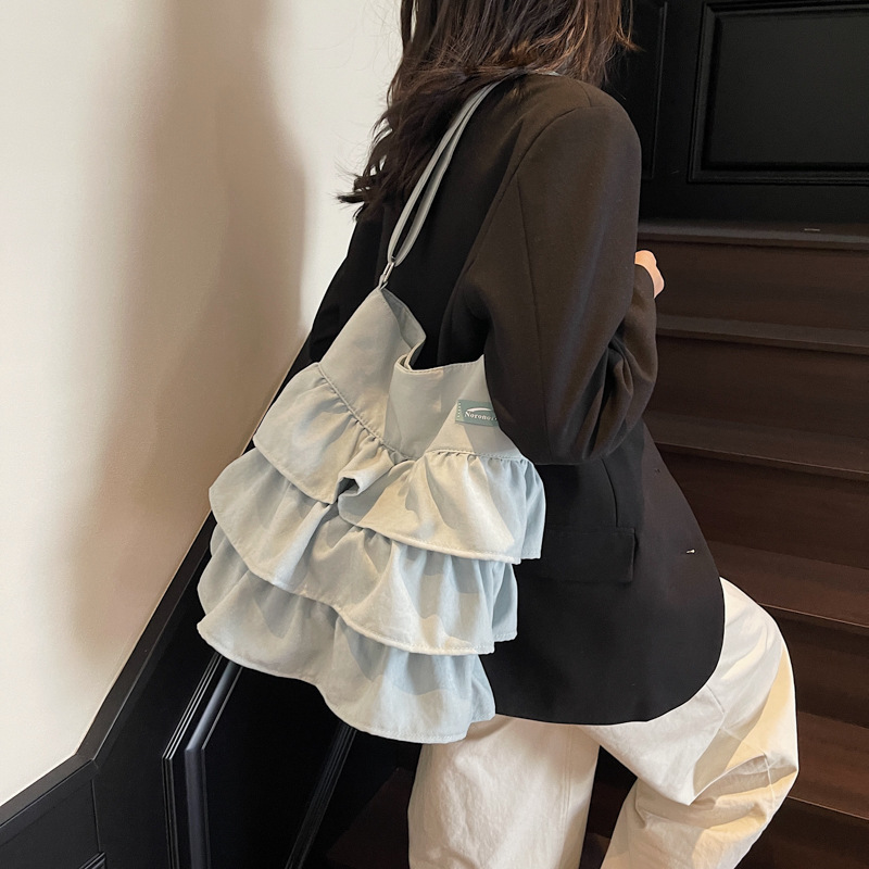 韓国のスカートのフリルの縁の布の包みの女性の2025新型のファッションの小さい大衆の特のカバンの大容量の斜めのショルダーバッグ
