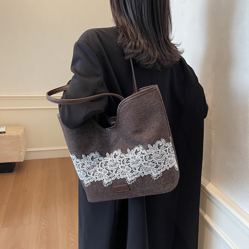 ニッチデザイン通勤バッグ レディース 2025年秋冬新作 おしゃれなウール素材 大容量ショルダーバッグ 多用途トートバッグ