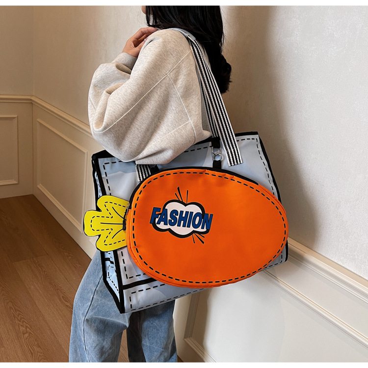 小衆イラストデザインバケツバッグ女性2025新型潮かわいいキャンバスバッグ