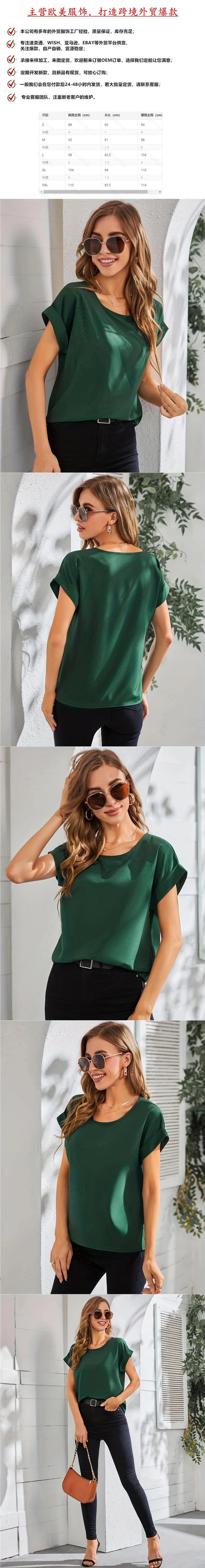クロスボーダー2024アマゾン春夏新作レディース半袖サテンシャツゆるいカジュアル丸首色丁tシャツ女性