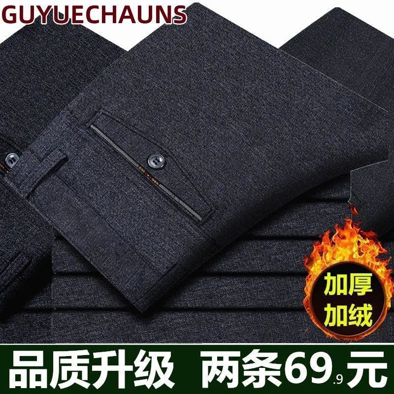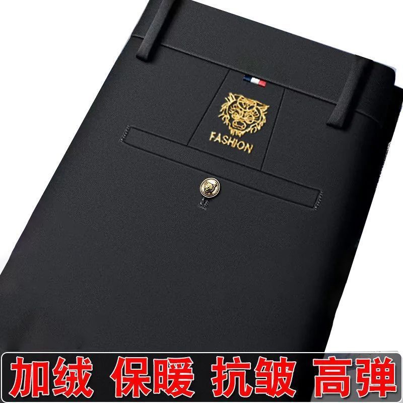 加绒加厚西裤男士冬季新款免烫弹力皇冠刺绣宽松直筒休闲裤子
