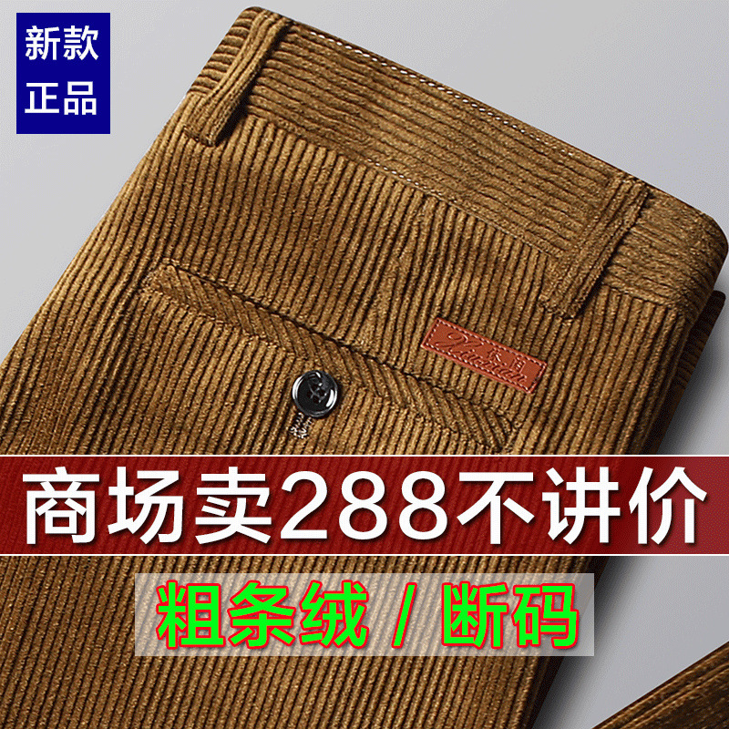 コーデュロイ秋冬厚タイプ中年男性カジュアルパンツ抗シワ無アイロンズボンストレート高級ビジネス百合ズボン