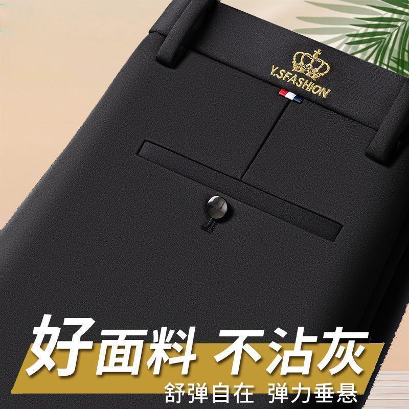男裤春秋款弹力秋季弹力男士西裤免烫直筒高腰深档商务厚款休闲裤