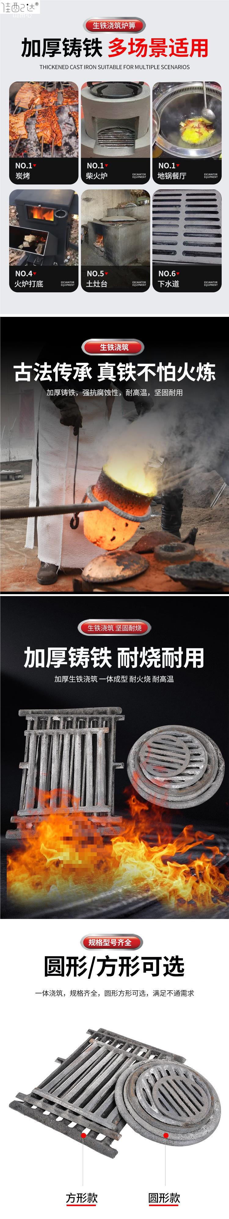 炉門鋳鉄炉子円形炉柵炉橋生鉄地漏灰薪かまど炉橋炉底鍋底厚