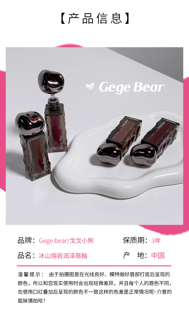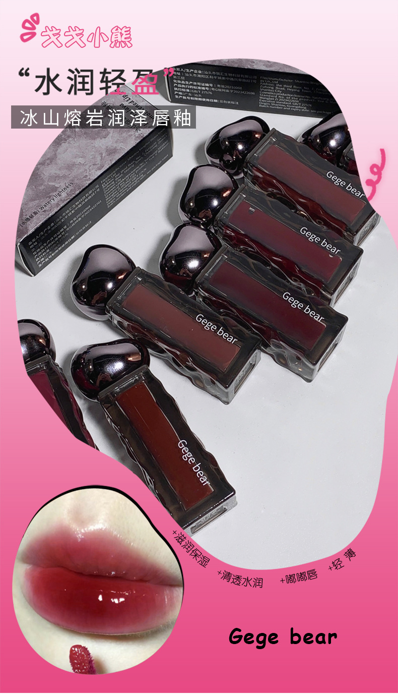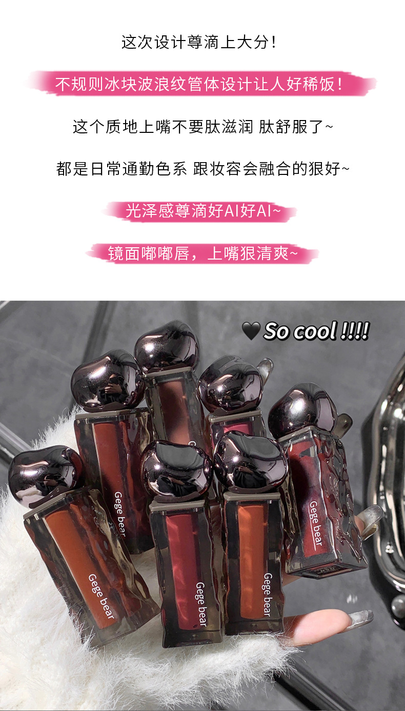 ゴゴ熊高颜値水光鏡面唇釉薬保湿潤い偽素顔白口紅女子学生党平価
