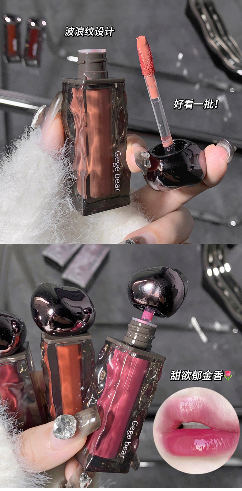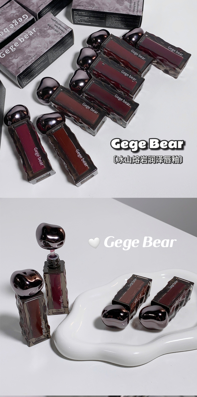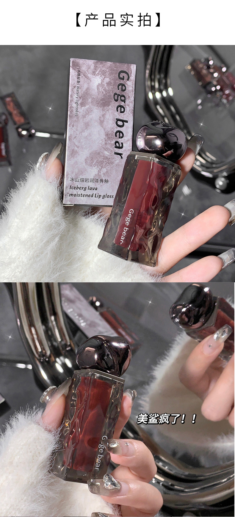 ゴゴ熊高颜値水光鏡面唇釉薬保湿潤い偽素顔白口紅女子学生党平価