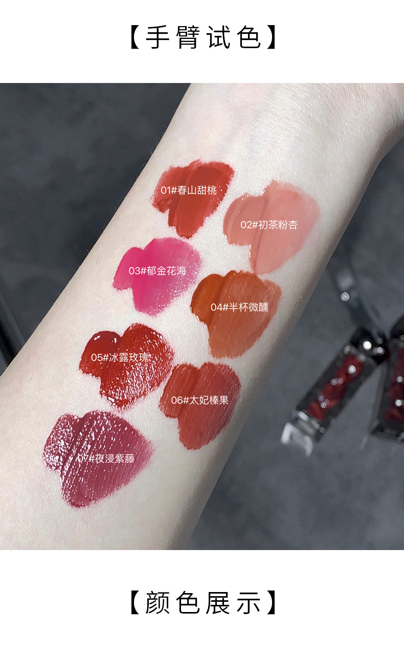 1#春の山の甘い桃,2#初茶パウダーアプリコット,3#チューリップの海,4#ほろ酔いカップ半分,5#アイスデューローズ,6#トフィーヘーゼルナッツ,7#夜の藤に浸る
