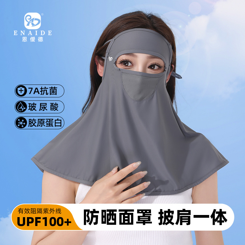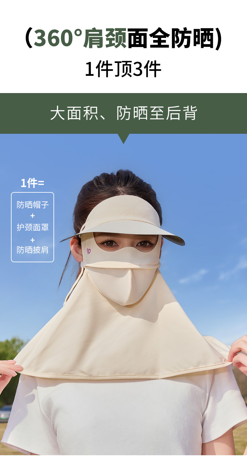 夏の日焼け止めマスク女性の顔全体を保護した後、首のマントが一体になって日よけ紫外線防止氷糸日焼け止めマスクに乗る