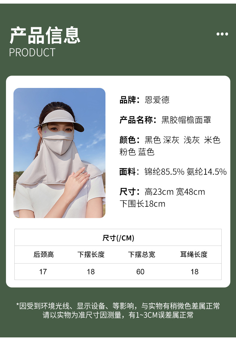 恩愛徳春夏秋首保護日焼け止めマスク紫外線防止運転日よけ男女涼感通気顔マスク
