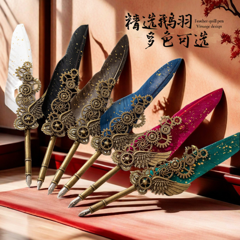 青孔雀機械パンク風翼ペンに水筆インク広告ギフトペン羽筆セットカスタマイズ