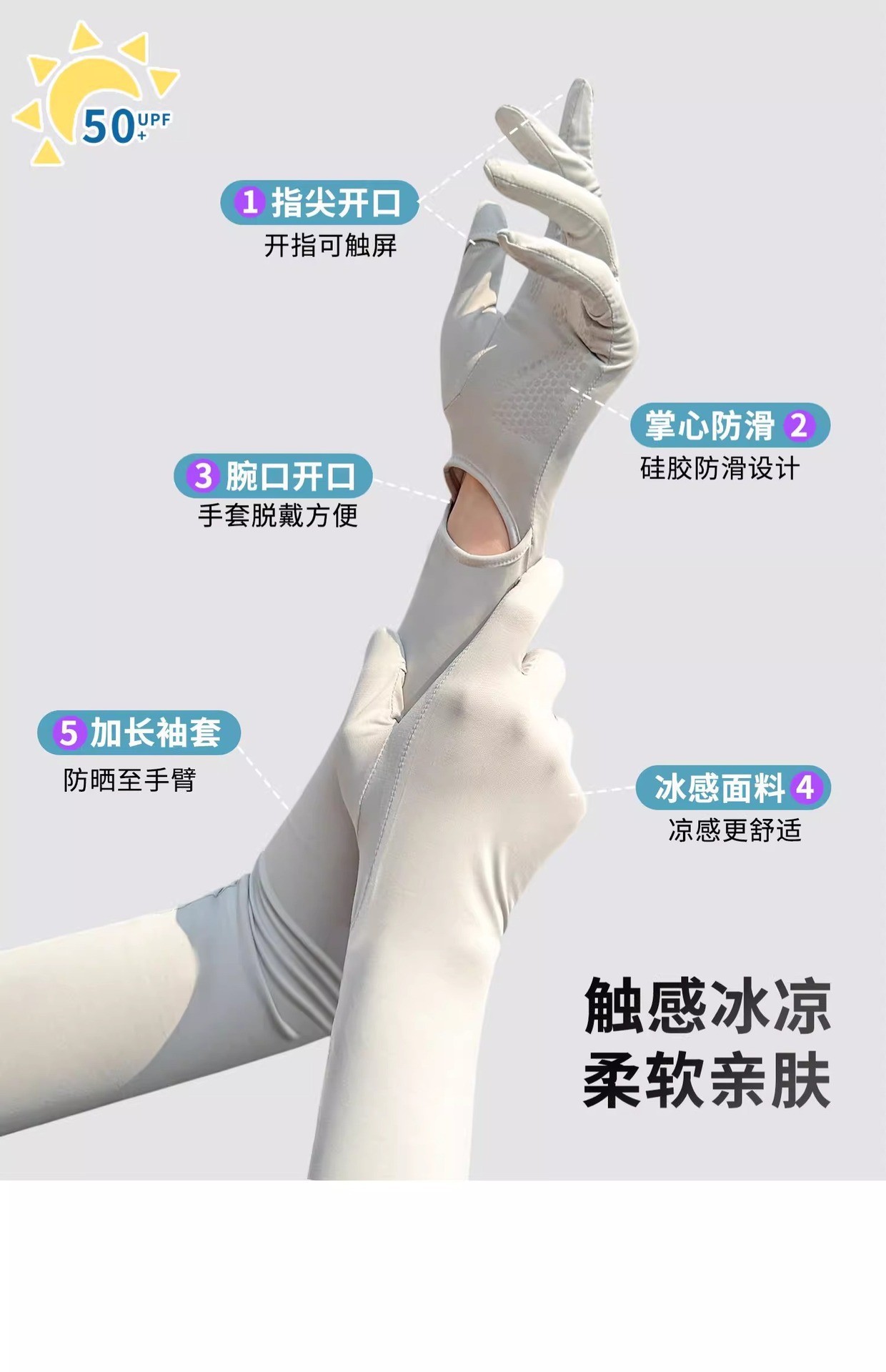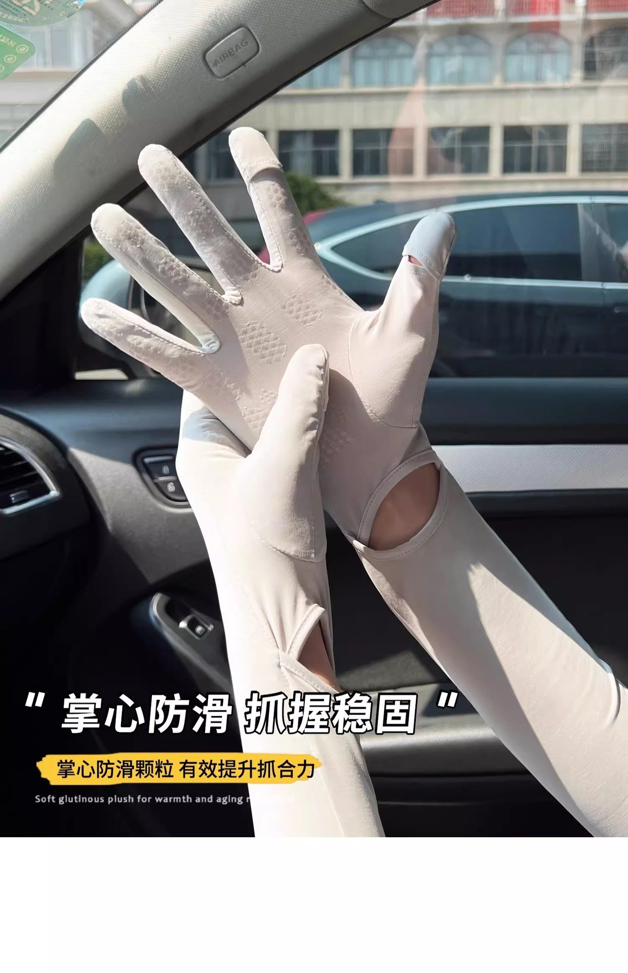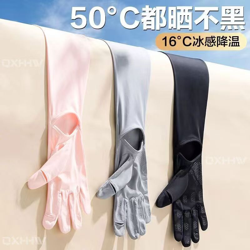 紫外線防止氷糸日焼け止め手袋女性夏のロングタイプの薄い屋外で通気性滑り止め運転氷袖カバー男
