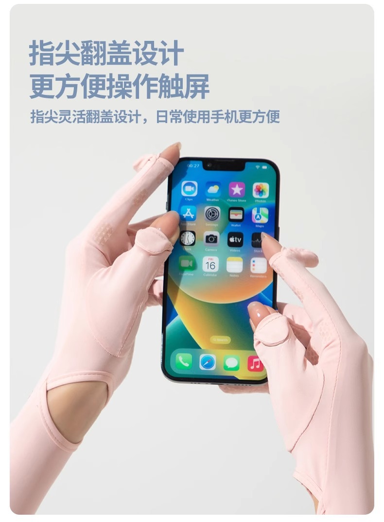 Zhaodingsheng 日焼け防止手袋女性の夏のアウトドアスポーツ滑り止め指なしタッチスクリーンフリップアイスシルク薄型サイクリング手袋