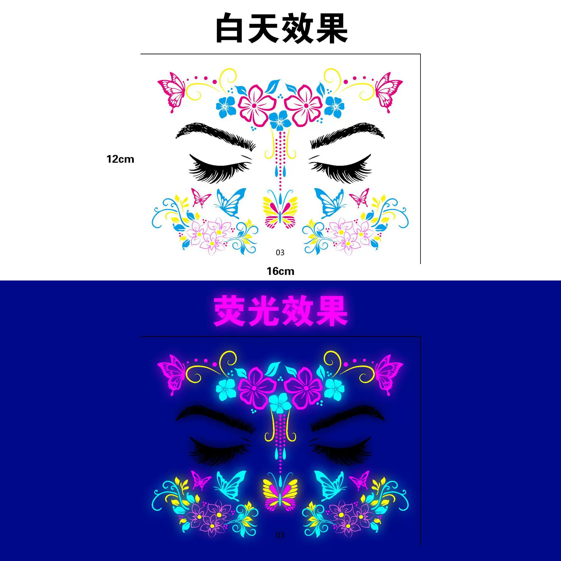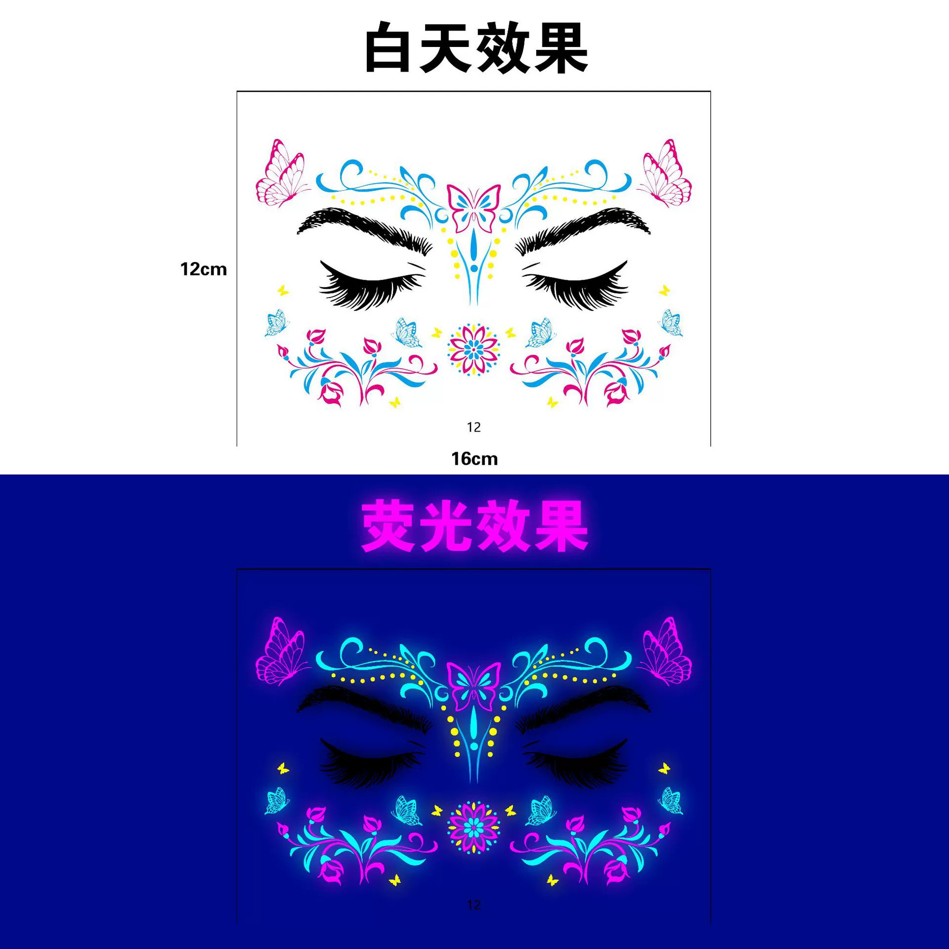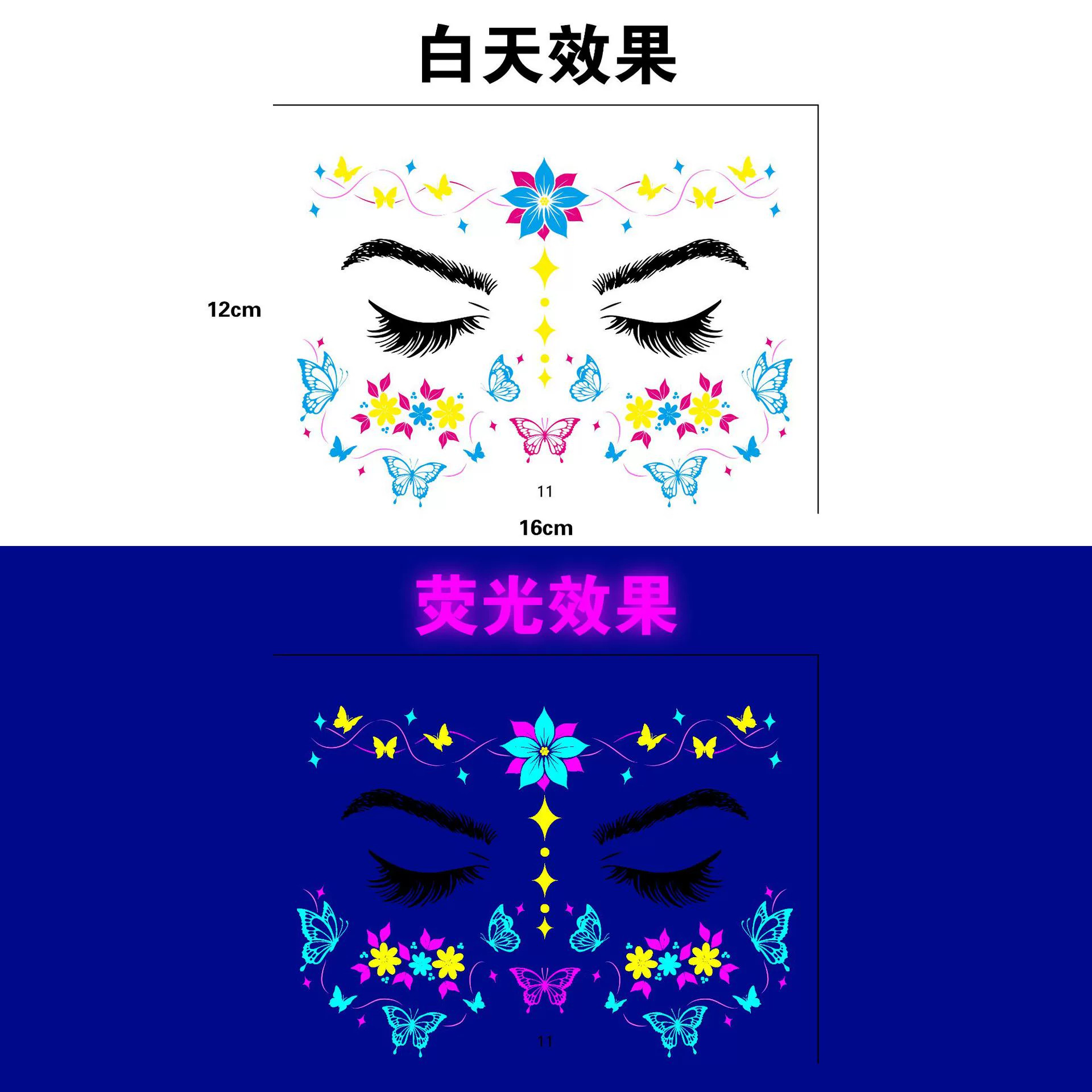 跨境新款蝴蝶音乐节荧光纹身贴夜店演唱会荧光贴纸电音节纹身贴纸
