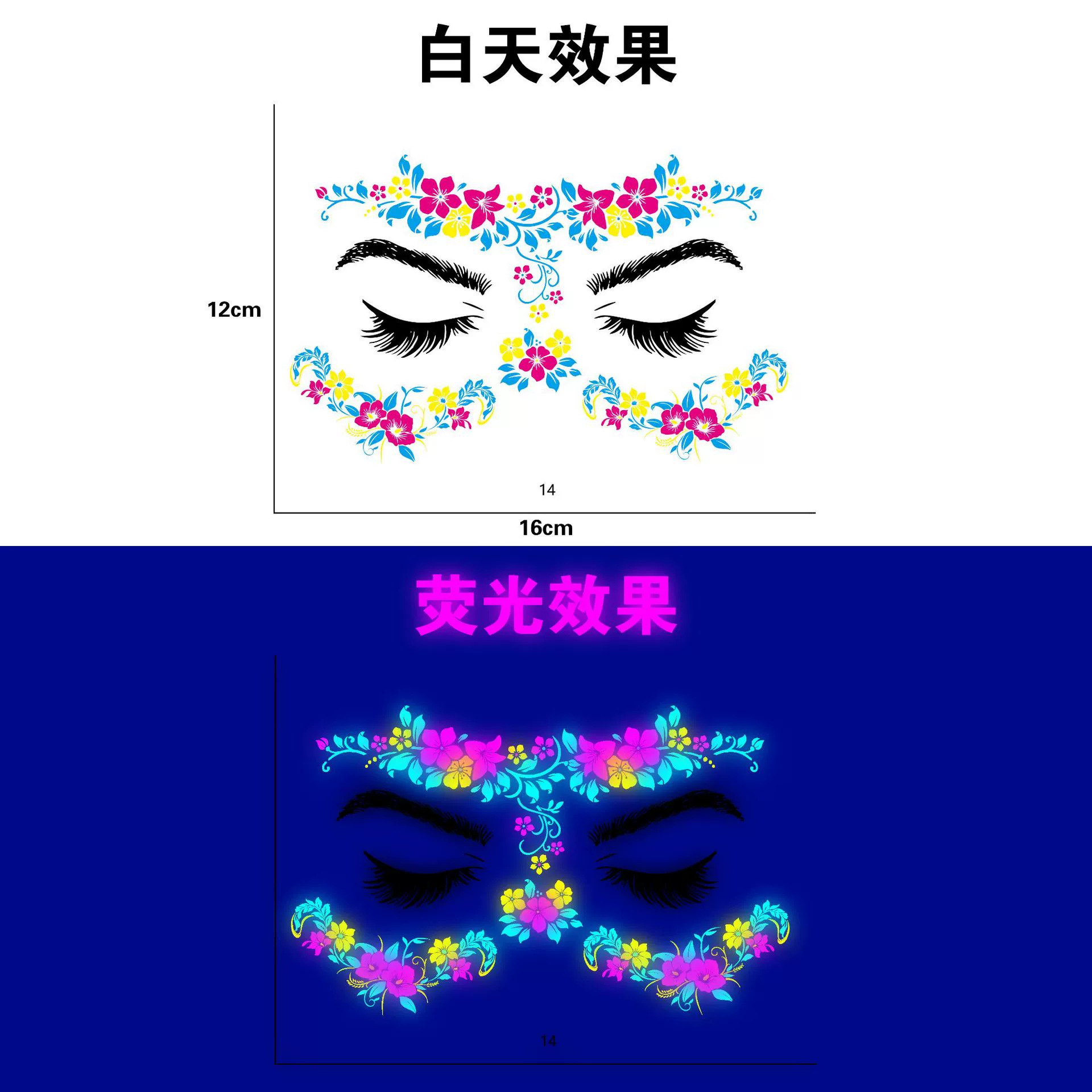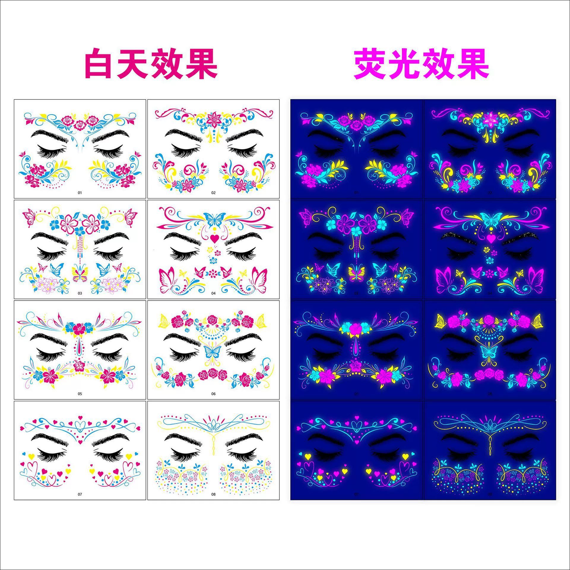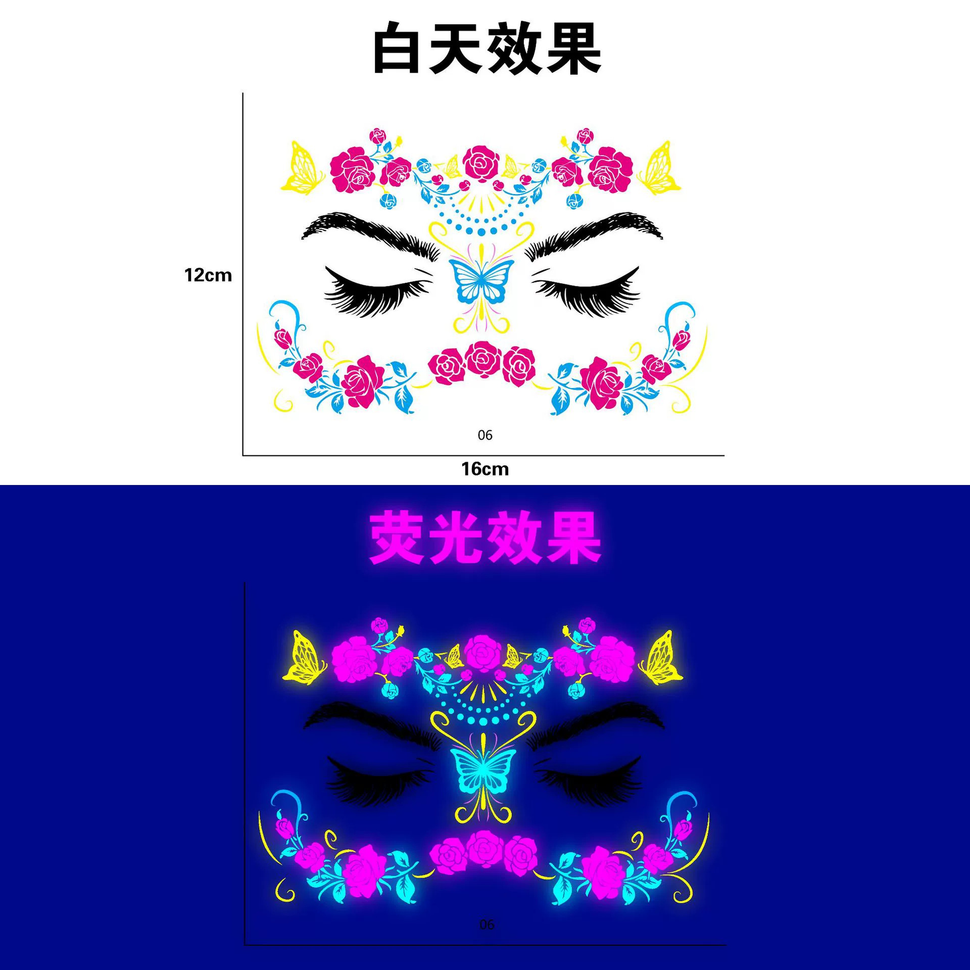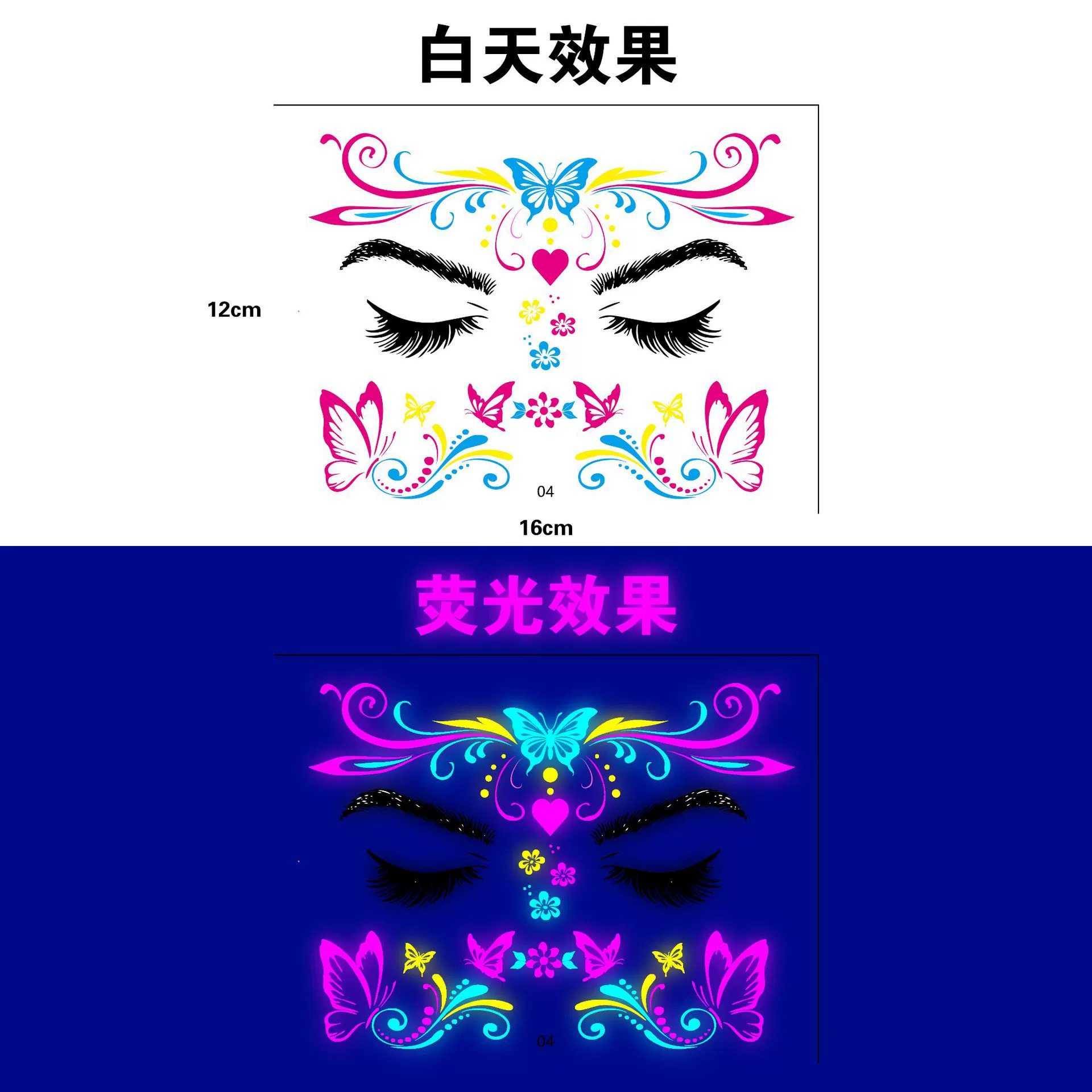 跨境新款蝴蝶音乐节荧光纹身贴夜店演唱会荧光贴纸电音节纹身贴纸