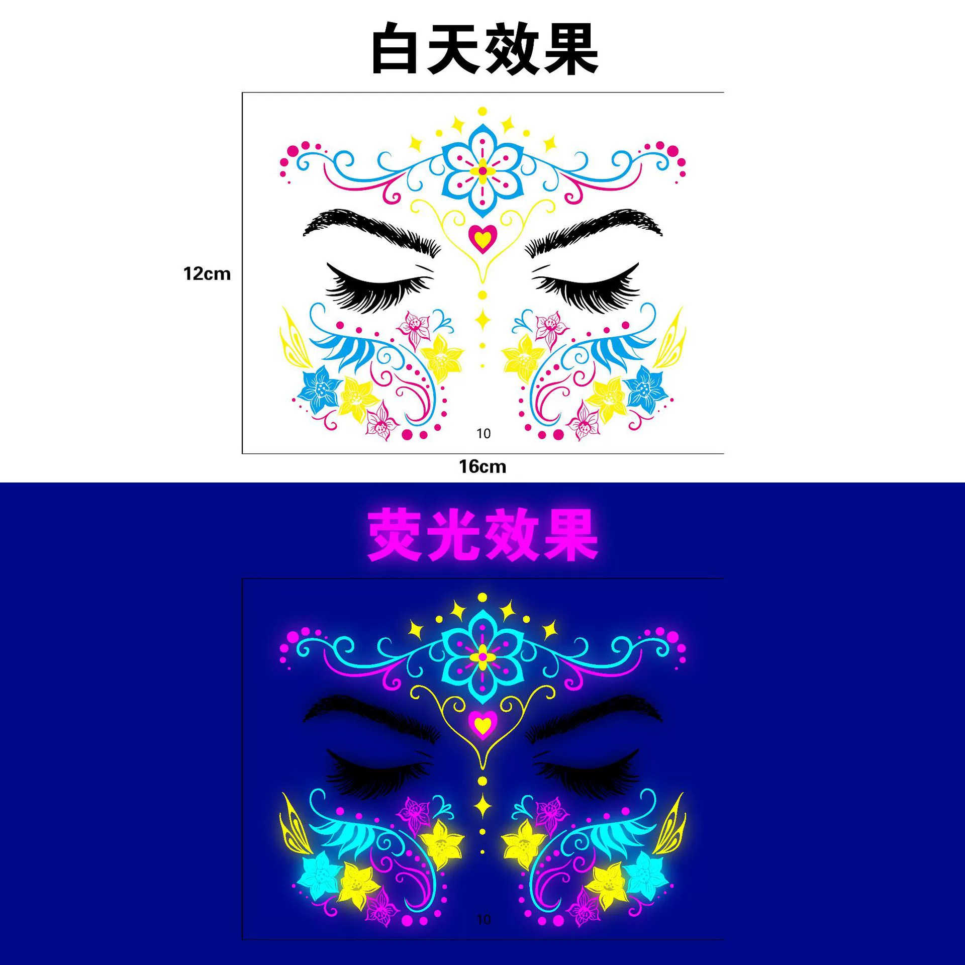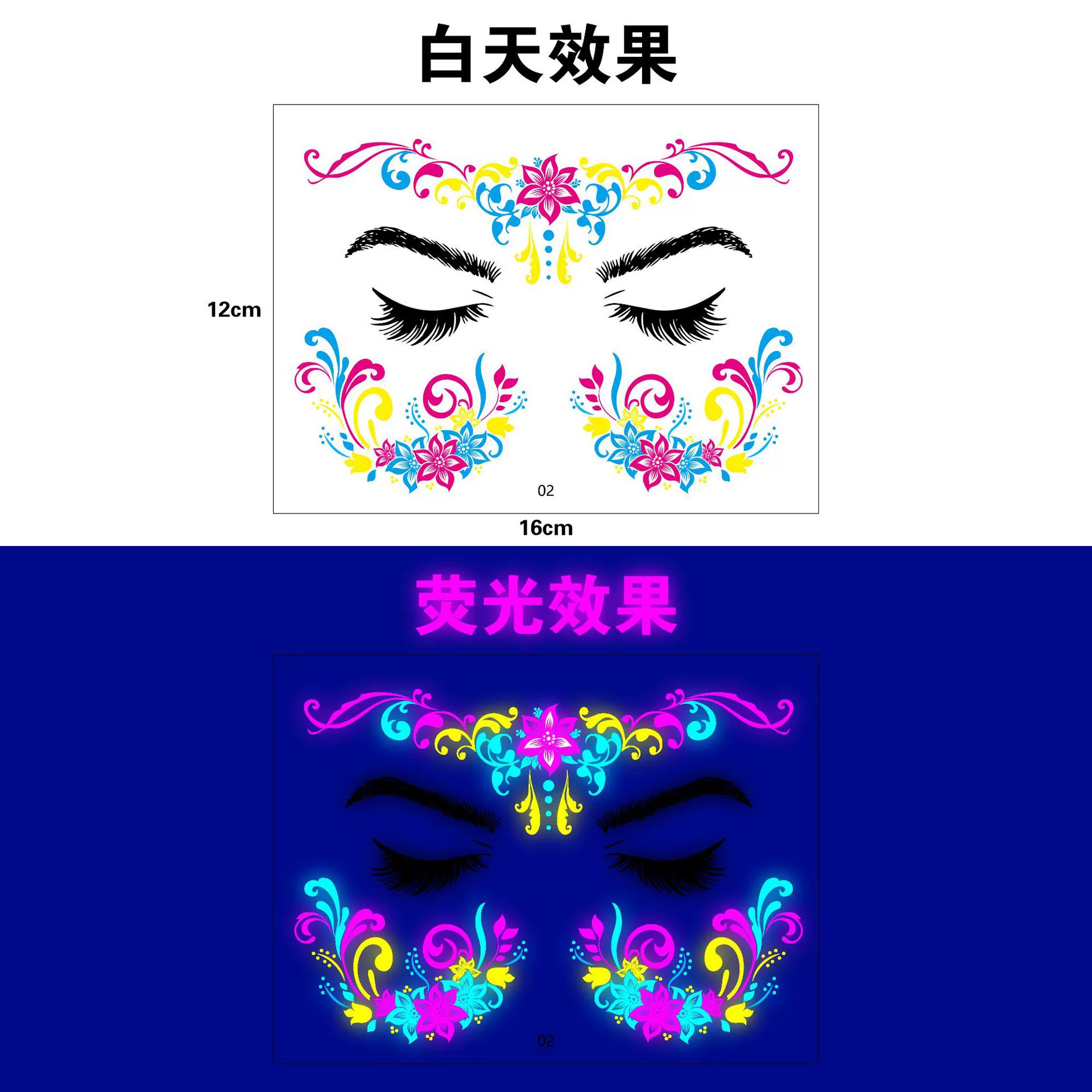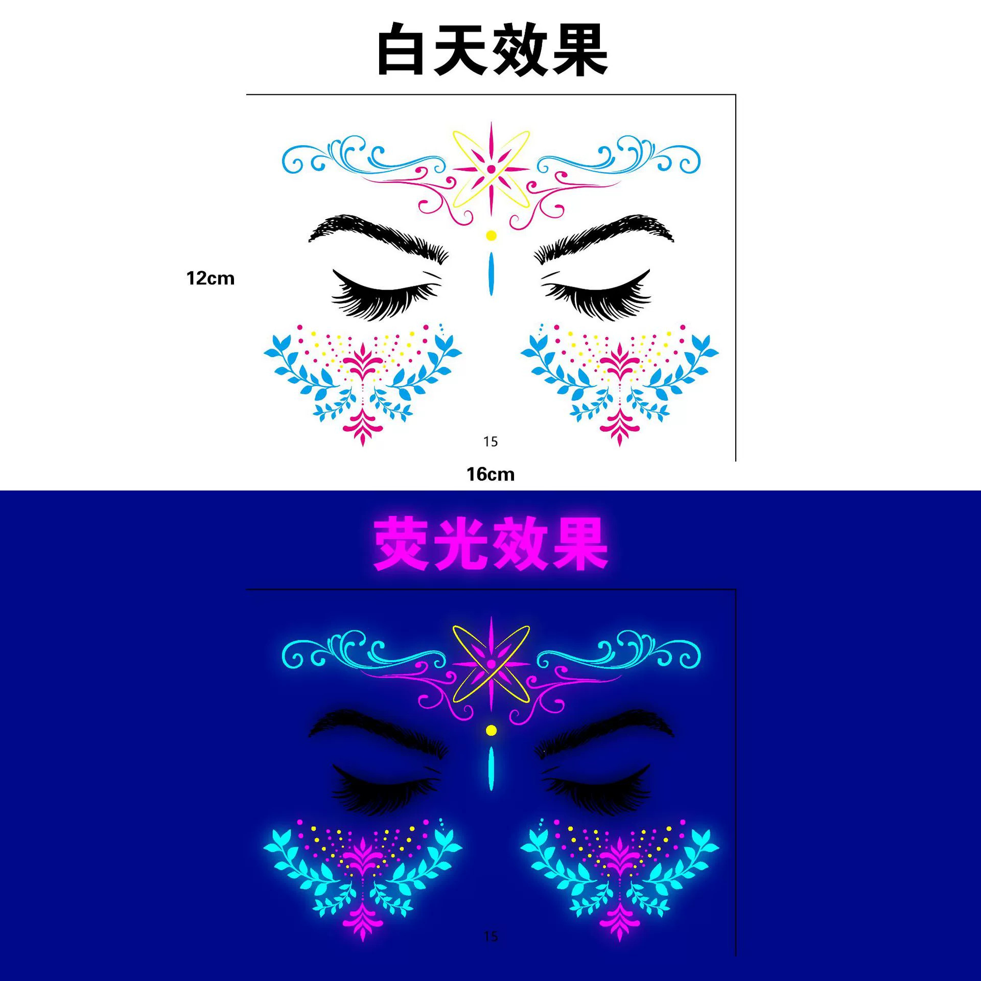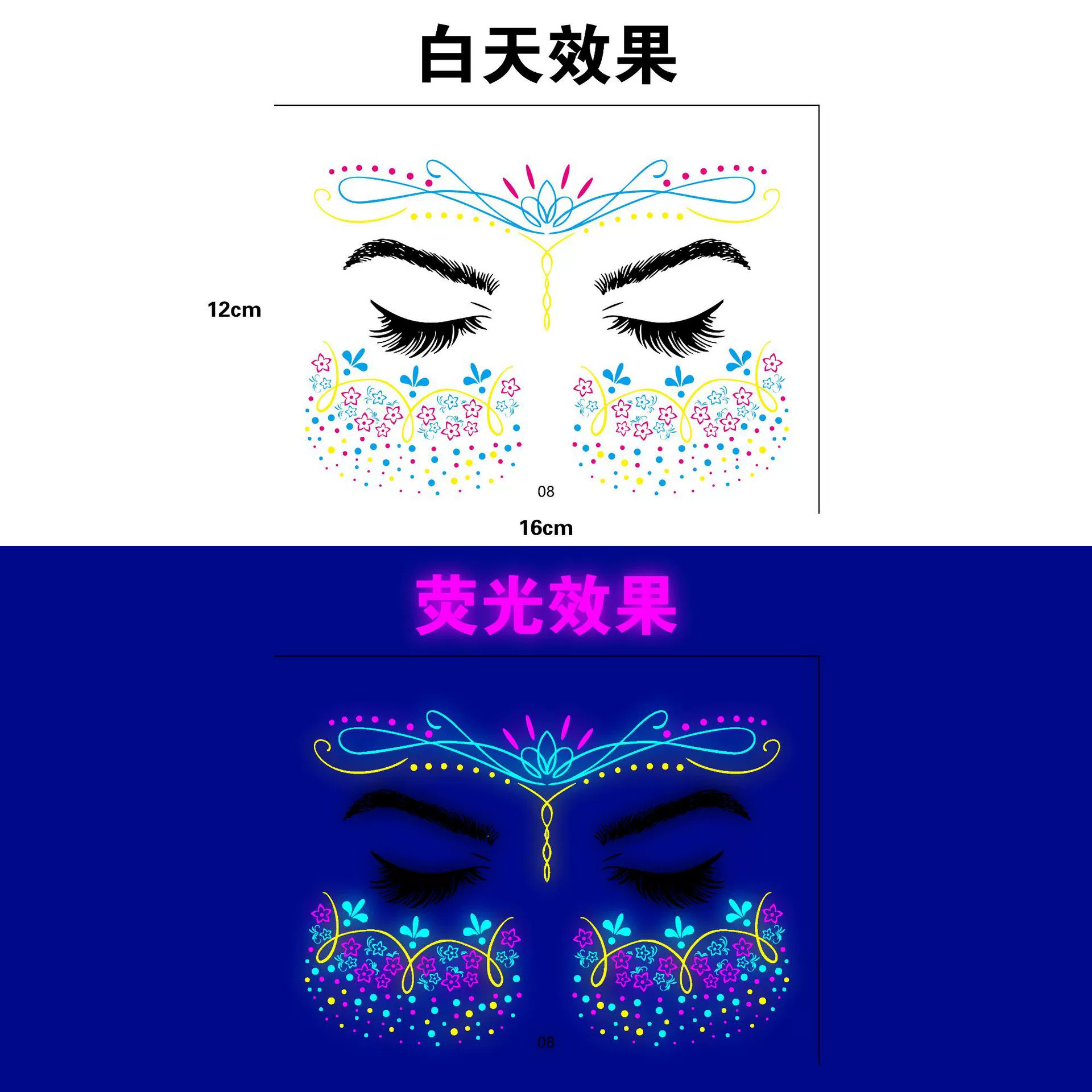 跨境新款创意音乐节荧光纹身贴夜店酒吧演唱会发光电音节纹身贴纸