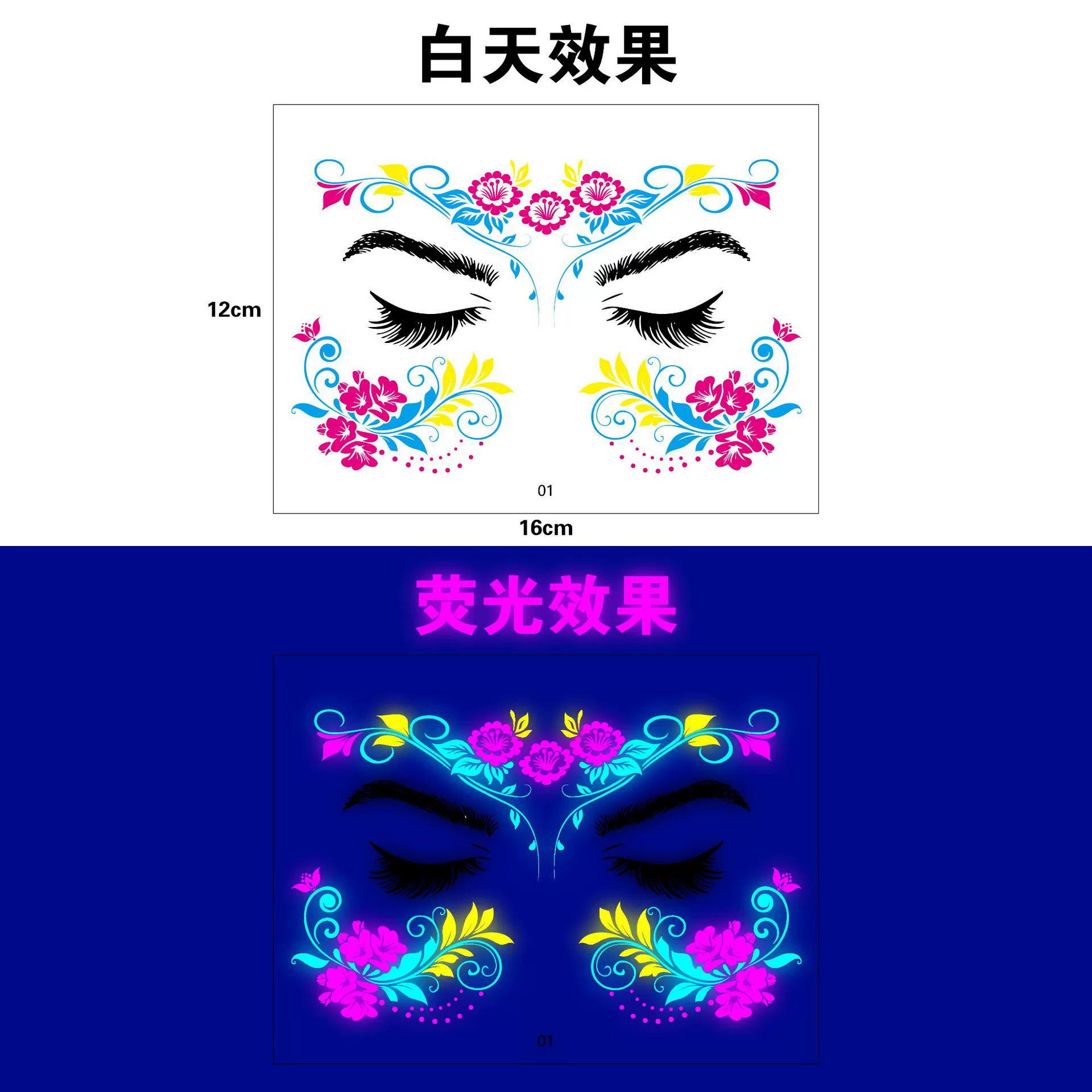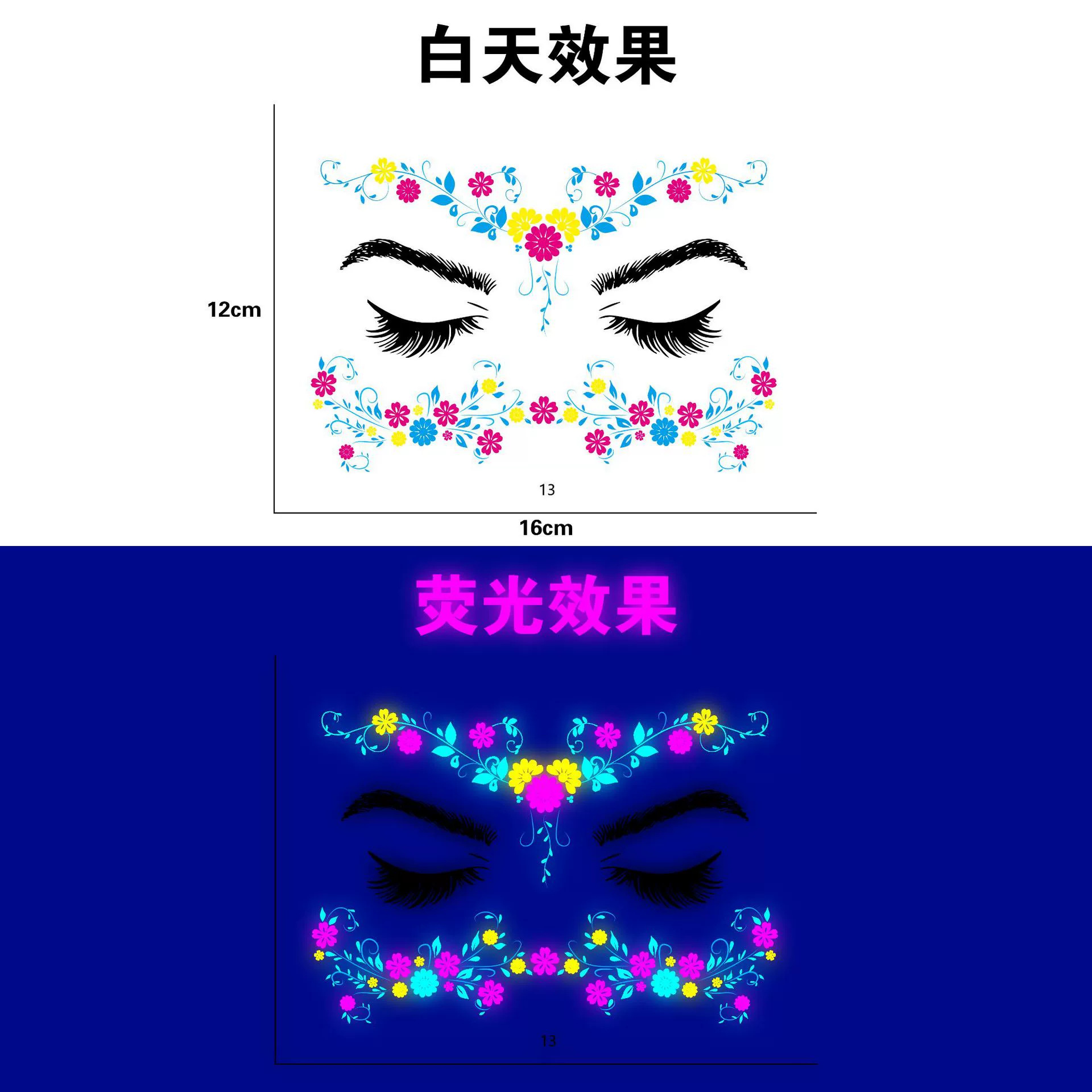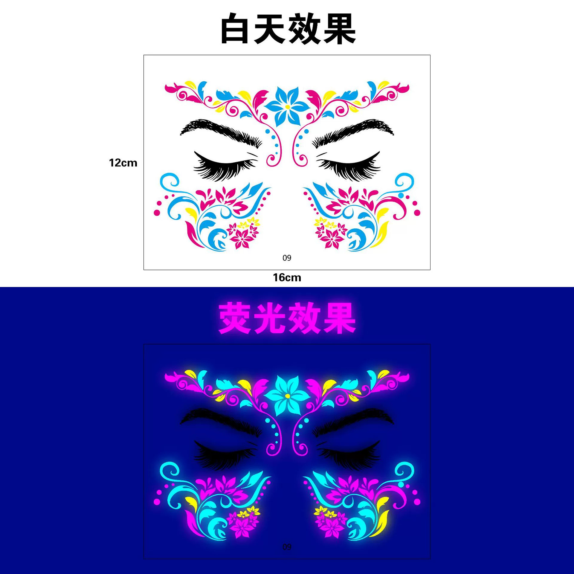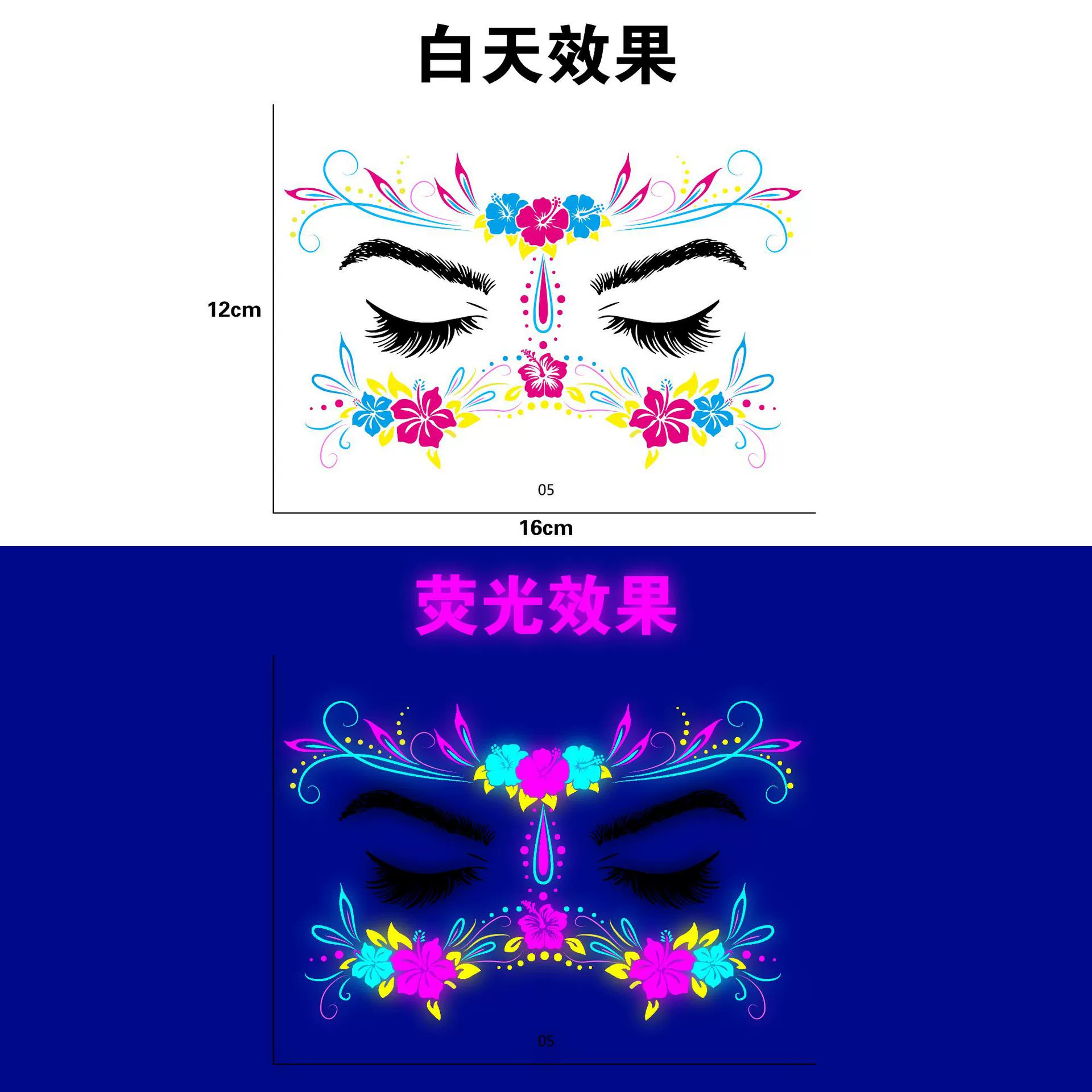 跨境新款创意音乐节荧光纹身贴夜店酒吧演唱会发光电音节纹身贴纸