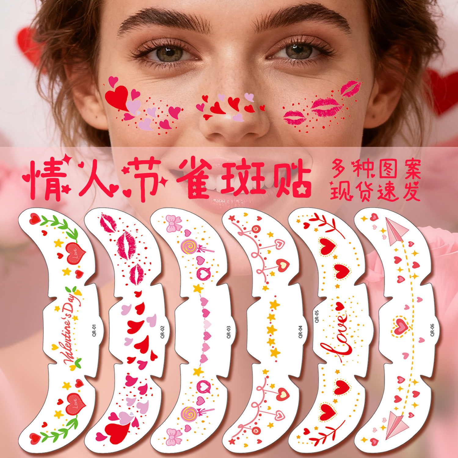 跨境新款情人节妆容贴雀斑纹身贴化妆唇印爱心丘比特腮红妆容脸贴