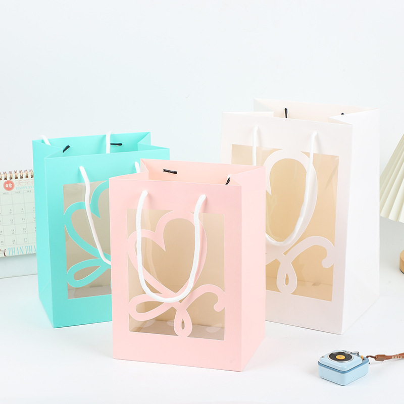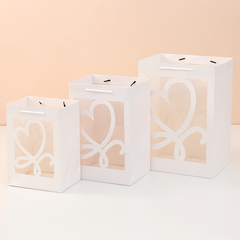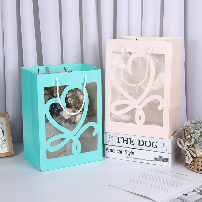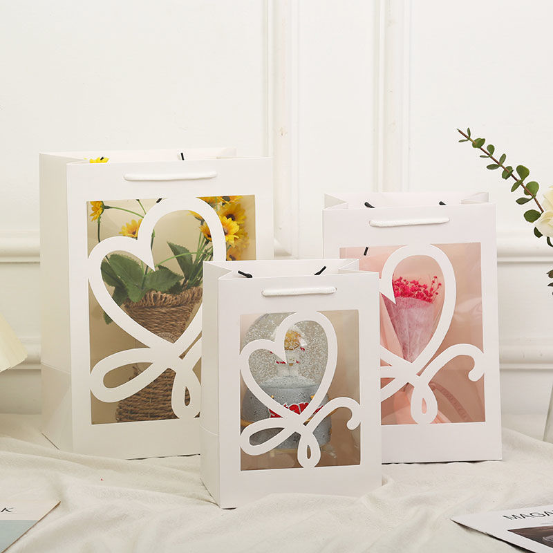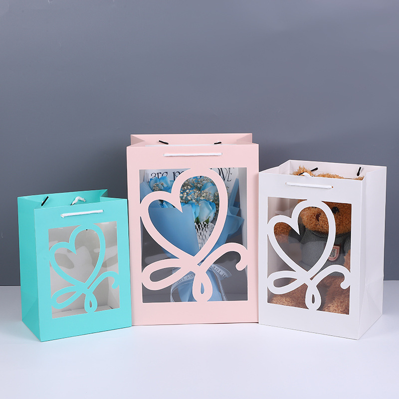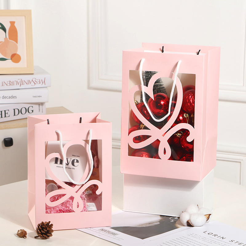 バレンタインデー窓透明ギフトバッグ窓花人形お土産紙袋ラブレタートートバッグ卸売