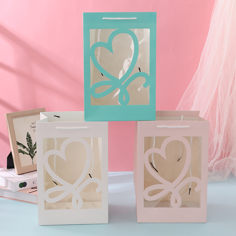 透明手提げ袋ショーウインドーバレンタインデー花ギフトバッグ誕生日紙袋花束人形プレゼント包装袋卸売り
