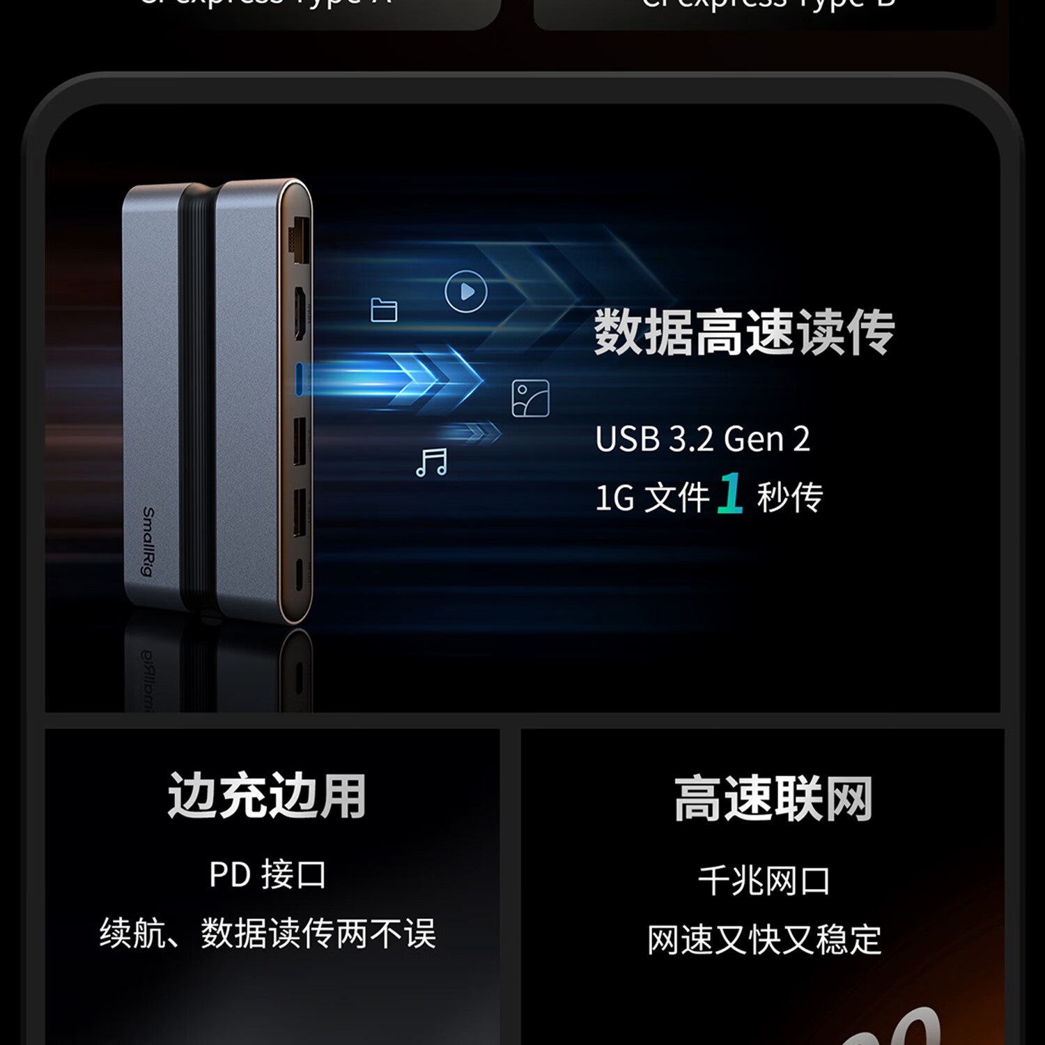 スモーグ (SmallRig)Type-C拡張ドック九合一多機能カードリーダーPD100W供給