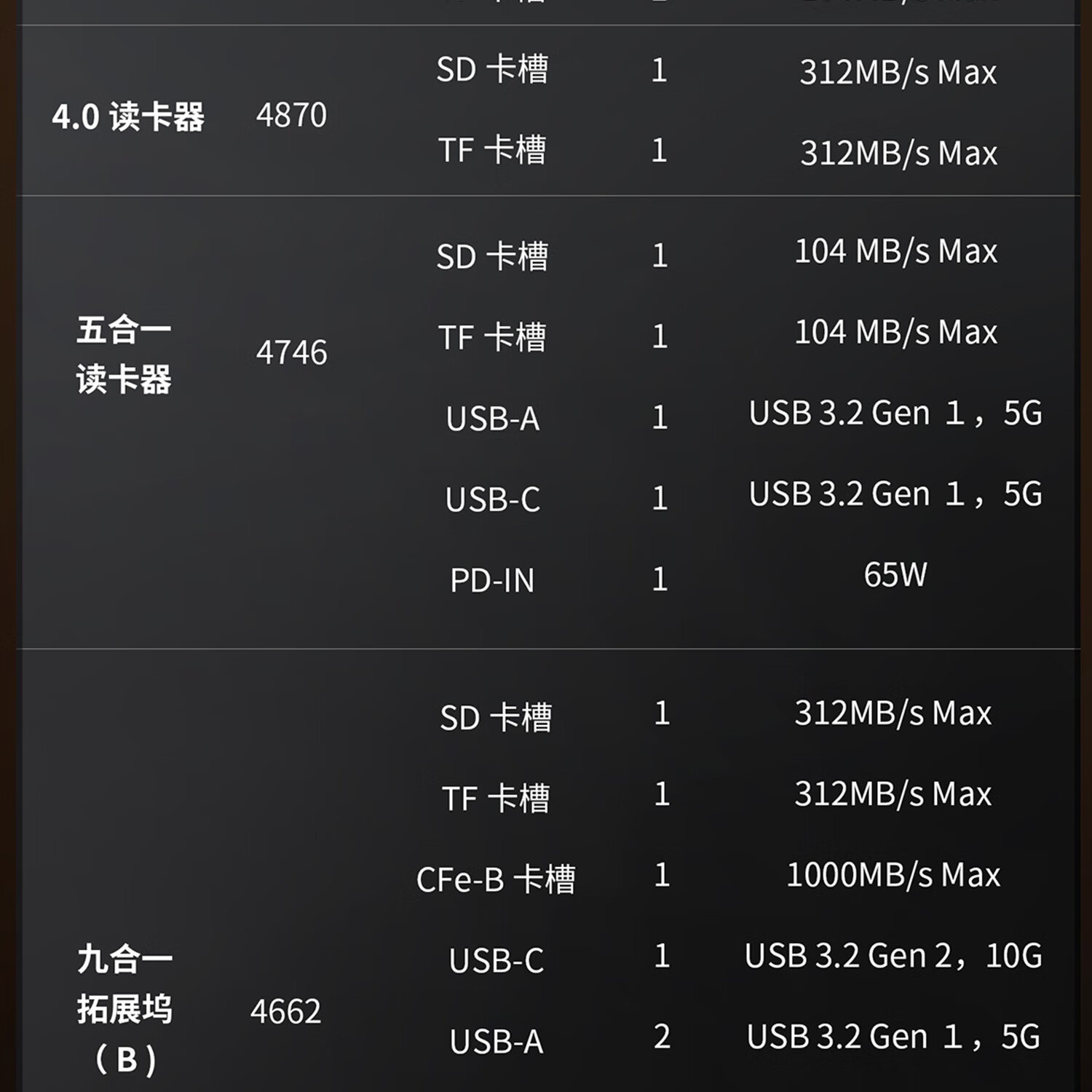 インターフェース数 (CFexpress-B カード スロット) 9 イン 1 ドッキング ステーション,(CFexpress-A カード スロット) 9 イン 1 ドッキング ステーション,5-in-1 カードリーダー (旅行写真用),磁気カードリーダー(SD3.0バージョン),磁気カードリーダー(SD4.0版)