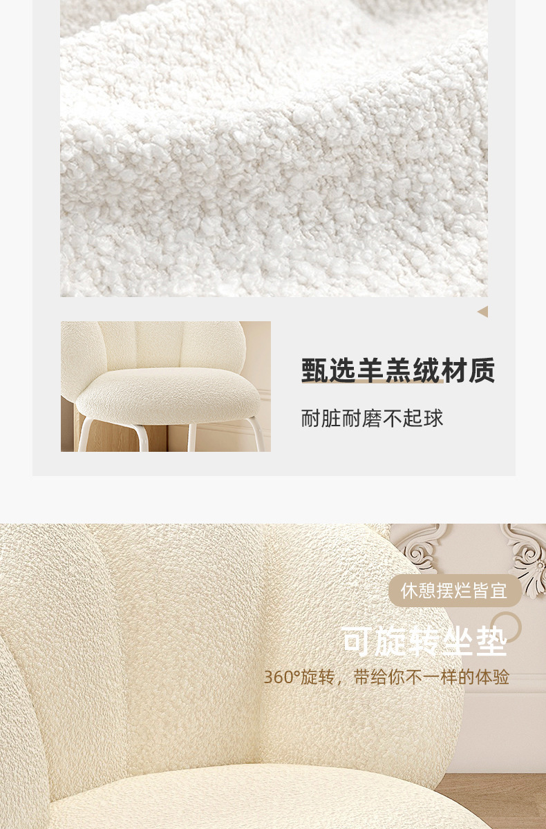 クリーム色の家庭用化粧椅子、ドレッシングスツール、ネイルサロン用椅子、寝室用シングルレジャーチェア、モダンなヤギ椅子