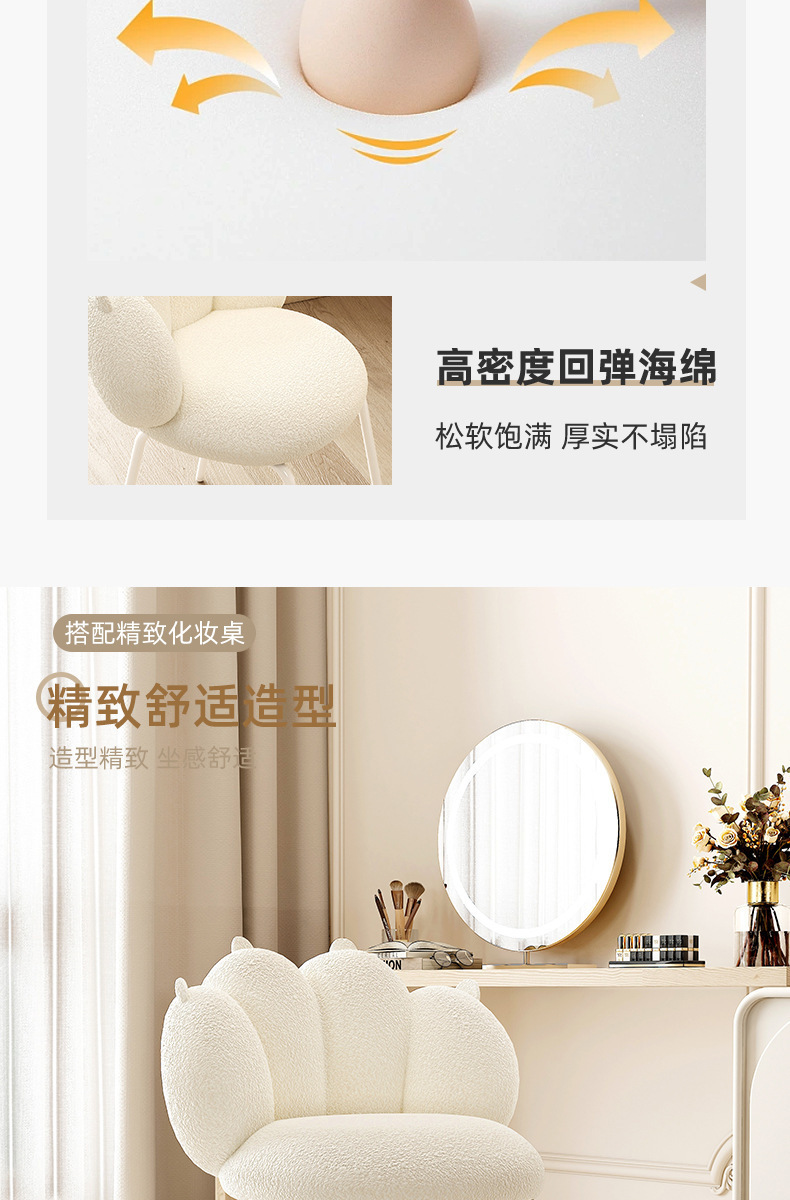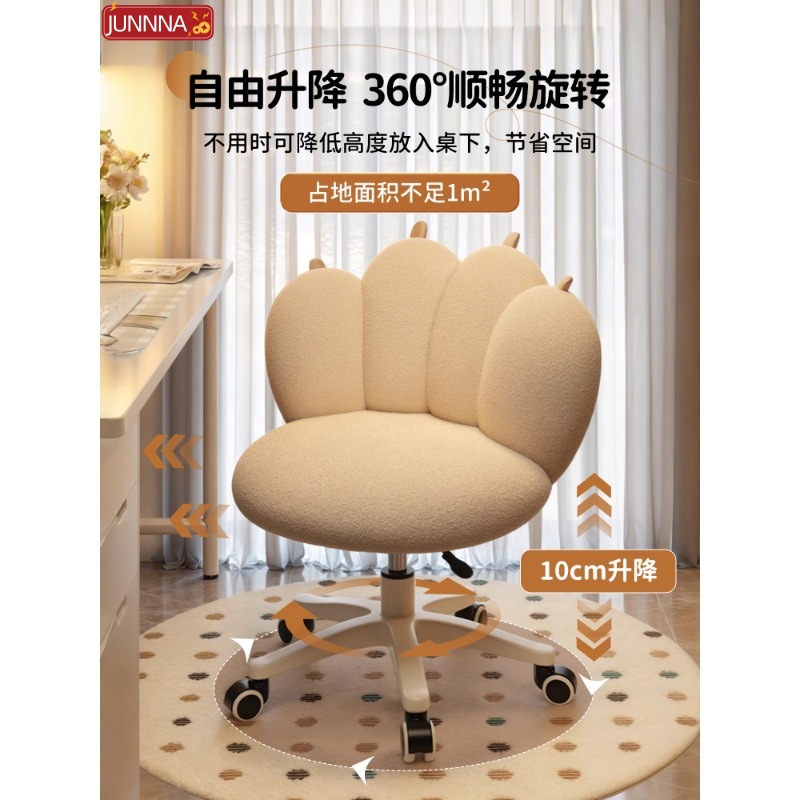 梳妆台凳子女生卧室衣帽间轻奢高级感旋转网红美甲靠背圆凳化妆椅