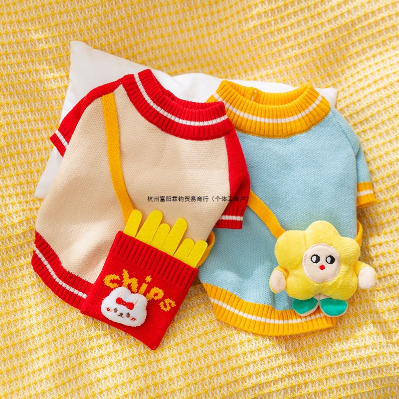 狗狗衣服秋冬季保暖毛衣可爱挎包针织衫泰迪比服装熊猫两脚宠物