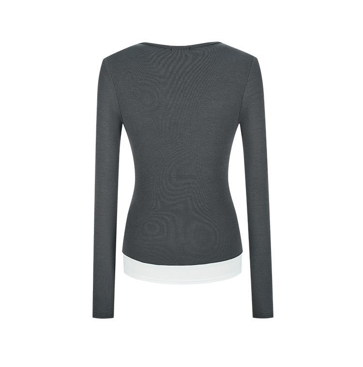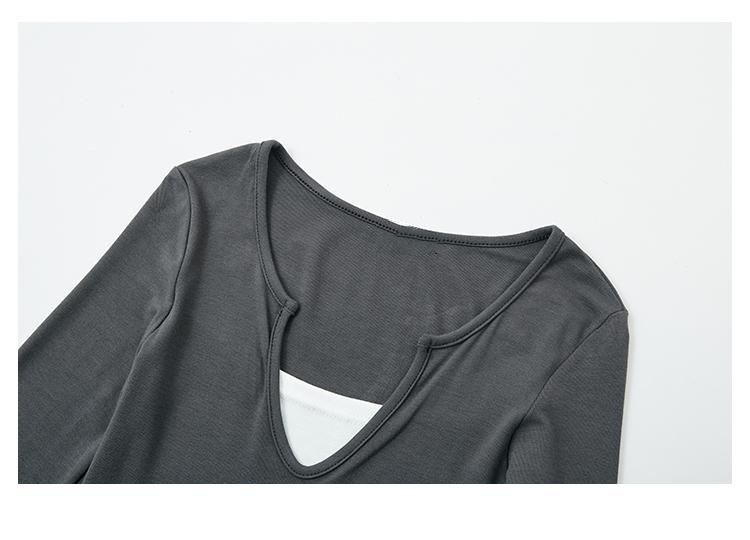 设计感袖口纽扣修身打底衫2025秋季新品开领长袖T恤女亨利衫加绒