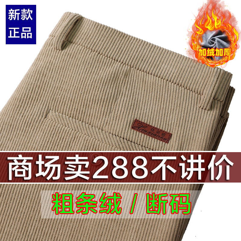 条绒冬季加绒加厚男裤秋冬爷爷爸爸灯芯绒男士休闲裤子高腰中老年