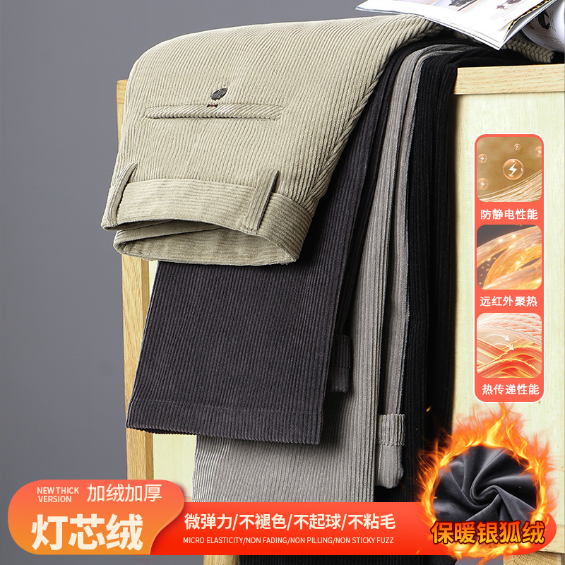 新中国風秋冬ベルベット厚手高弾力中年男性カジュアルパンツストレートビジネスズボン男性ズボン