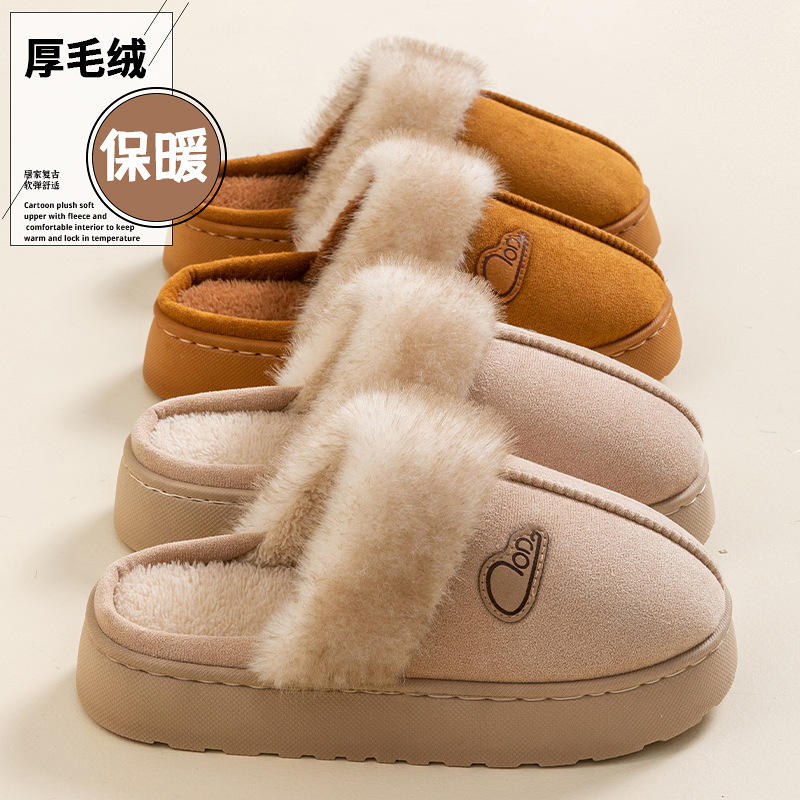 新款时尚厚底棉拖鞋女款秋冬季外穿防滑保暖加厚毛毛绒棉拖鞋批发