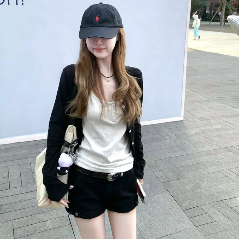 黒の薄い長袖ニットカーディガン女性の夏の新しいスタイルの小さなアウタートップ日焼け止めショートジャケットブラウス