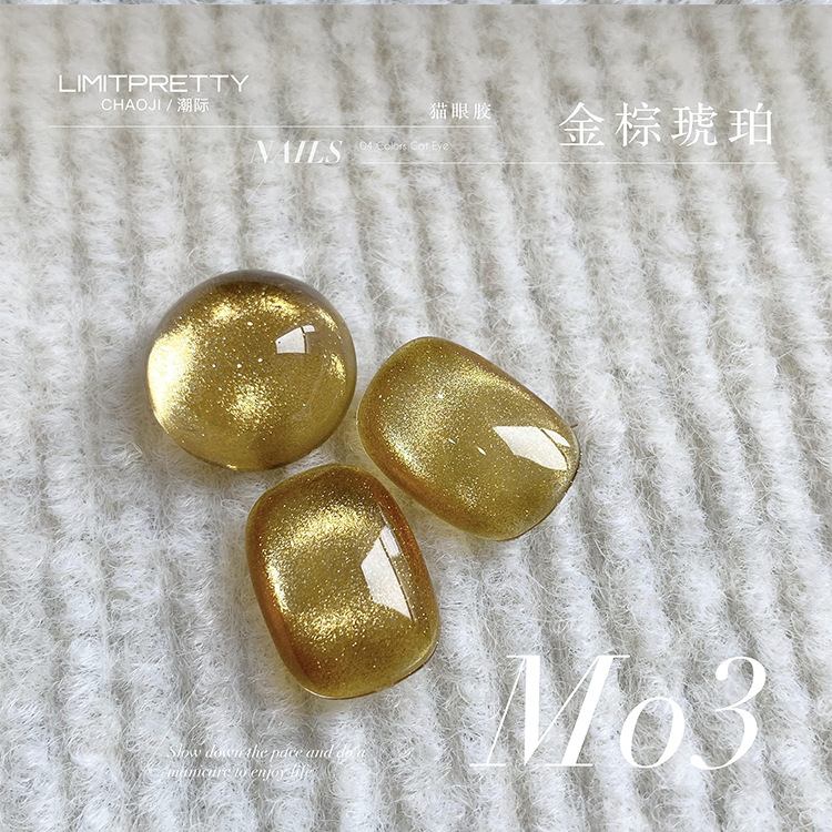 ネイルアート新作ゴールドブラウン琥珀系キャットアイネイルポリッシュ秋冬新作ガラスビーズ結晶石バーストネイルサロン専用