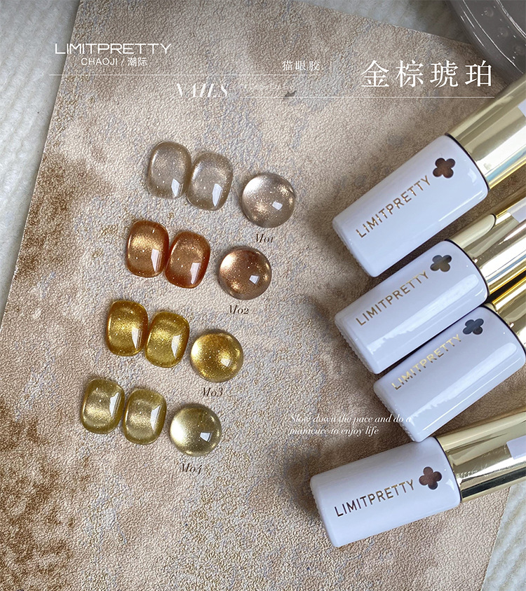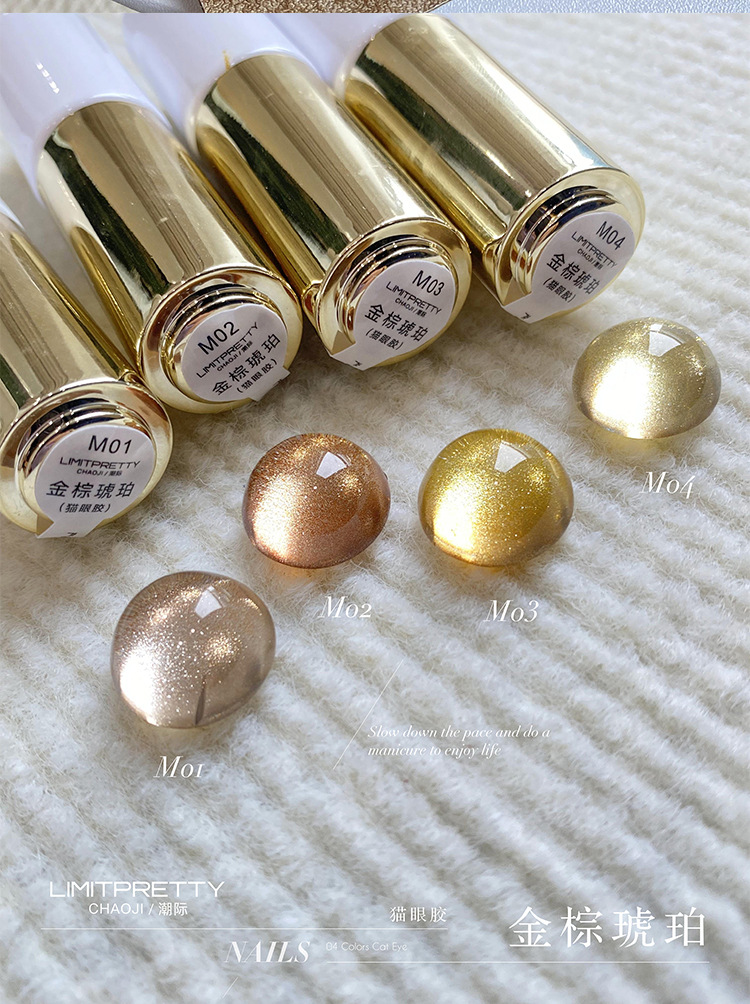 秋冬新款焦糖琥珀落日金秋猫眼系列轻奢显白美拉德色玻璃珠甲油胶