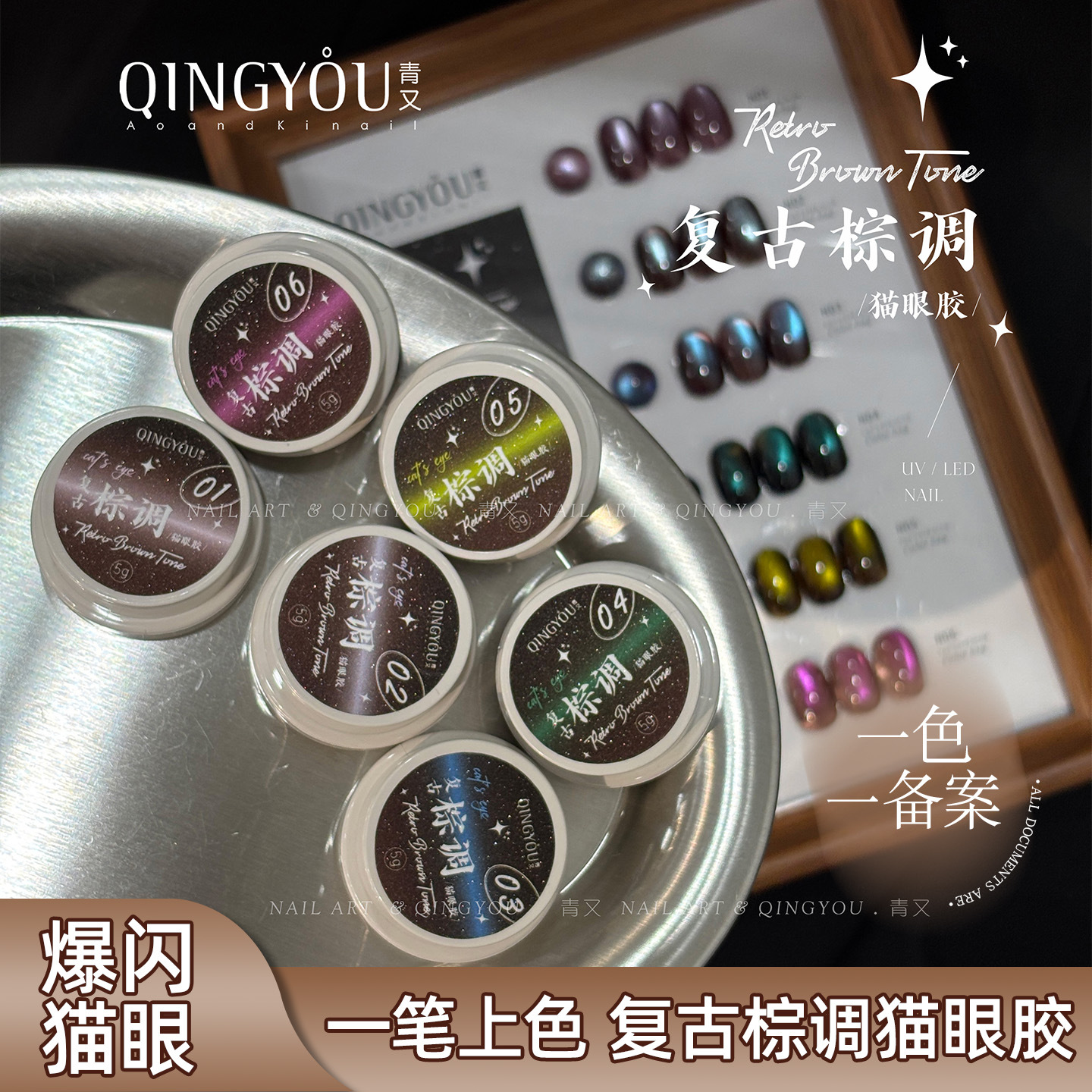 复古棕调网红新款秋冬猫眼胶日式罐装胶显白晶石甲油胶美甲店专用