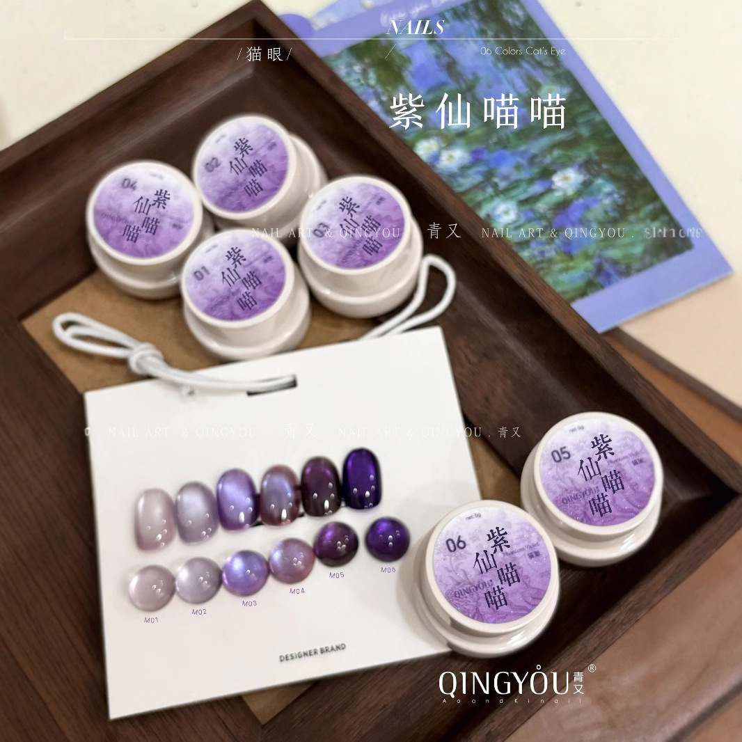 ネイルの新型の優雅な紫仙のニャンニャンのネットの赤い密度の日本式の充填の猫の目の水の光の白晶の石の猫の目の卸売り
