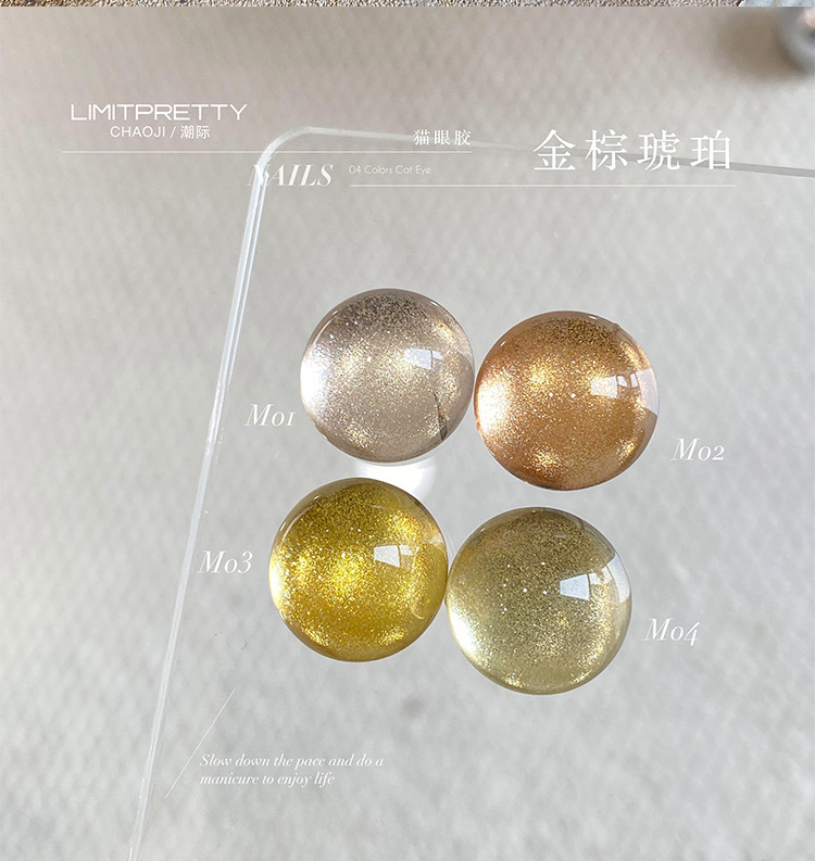 网红新款美甲繁体珍珠猫眼系列细闪水润光感系列玻璃珠猫眼胶