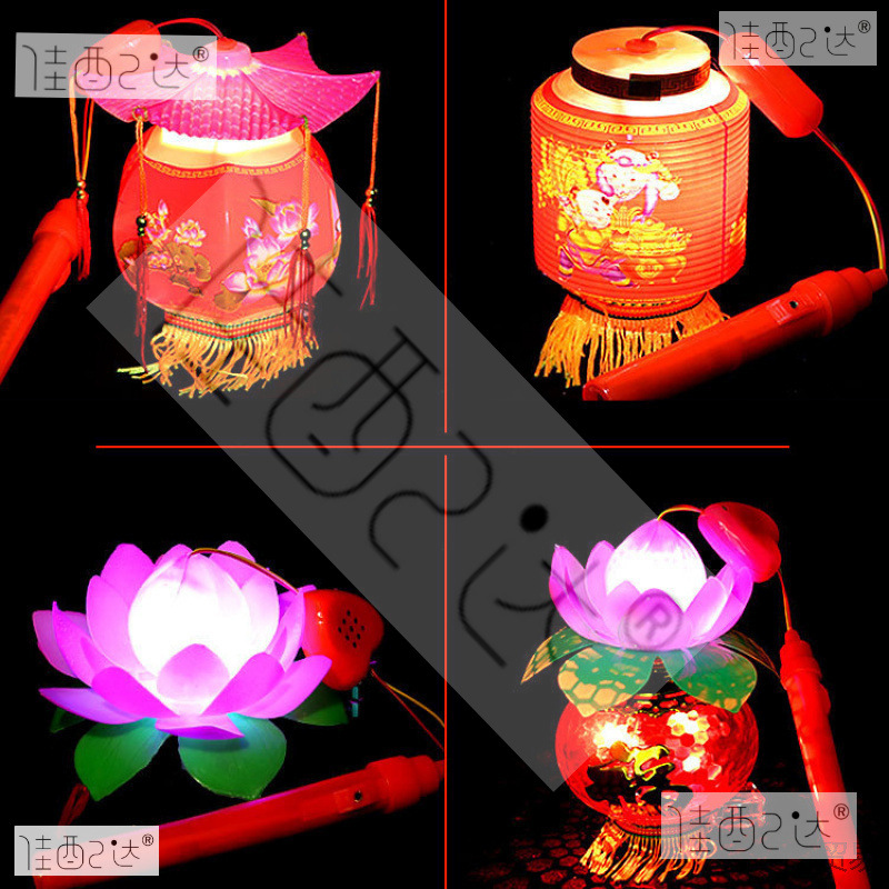 元宵の春節提灯の子供はハスの花灯のおもちゃの露店を持って元宵節の子供の提灯のおもちゃの贈り物を売ります。