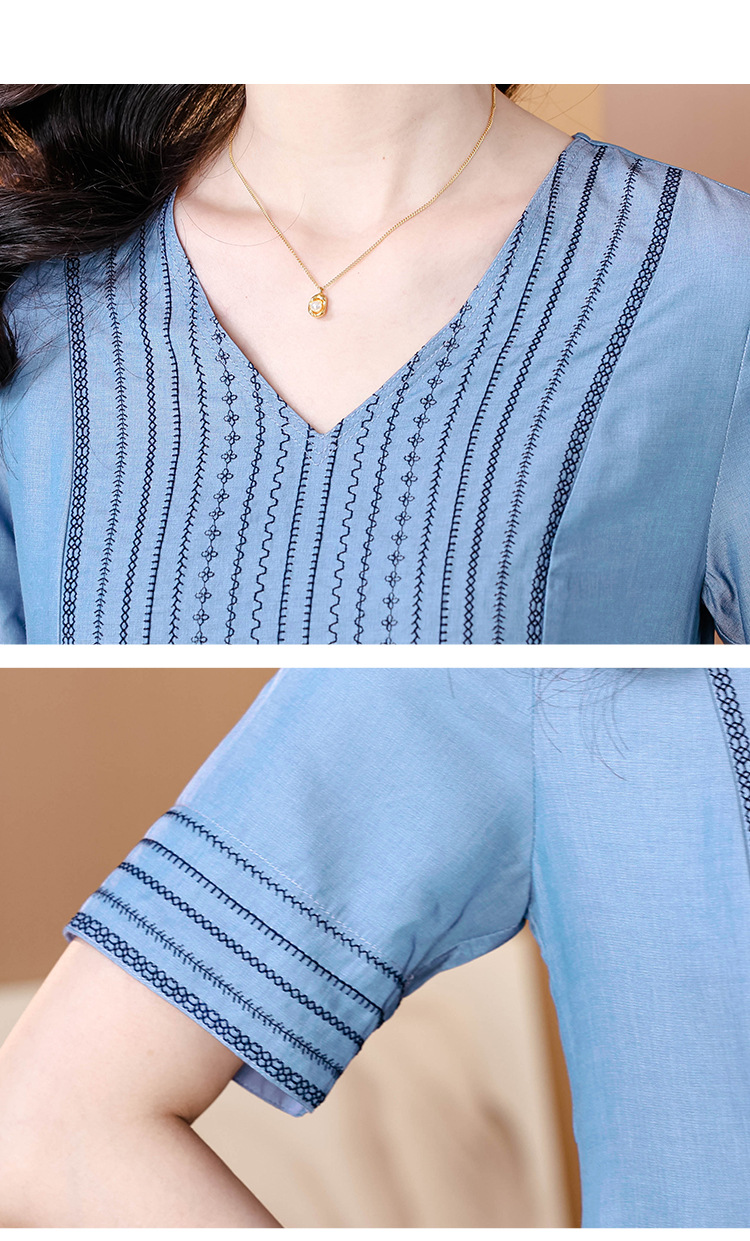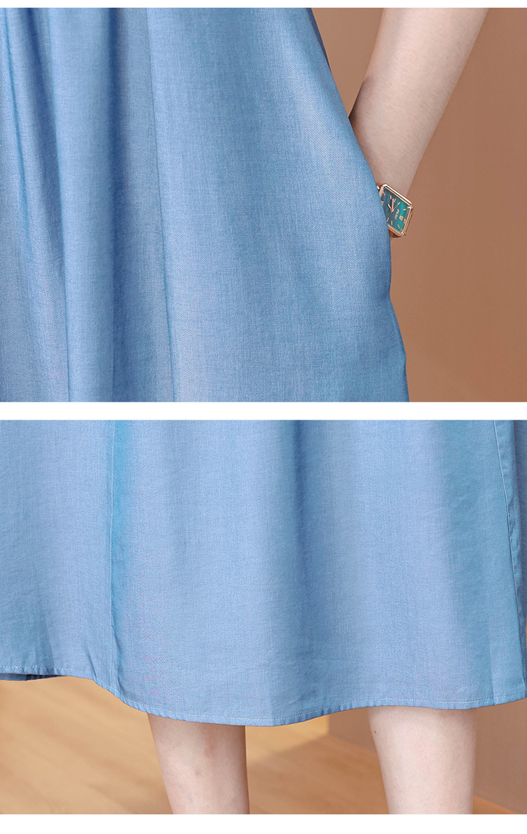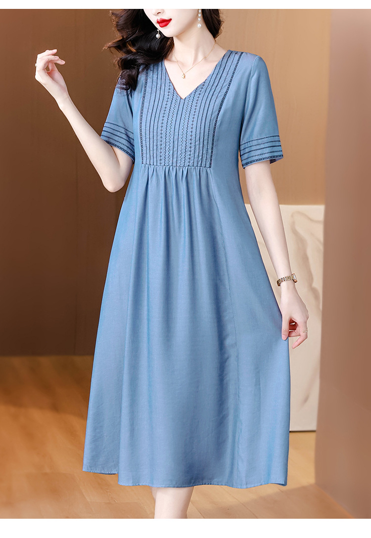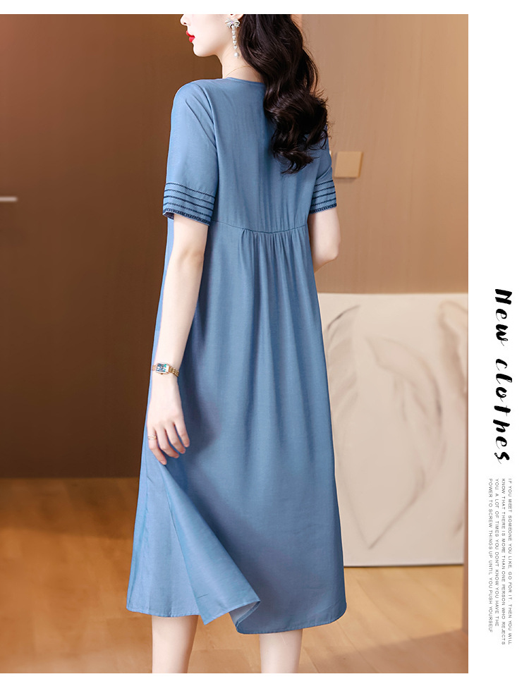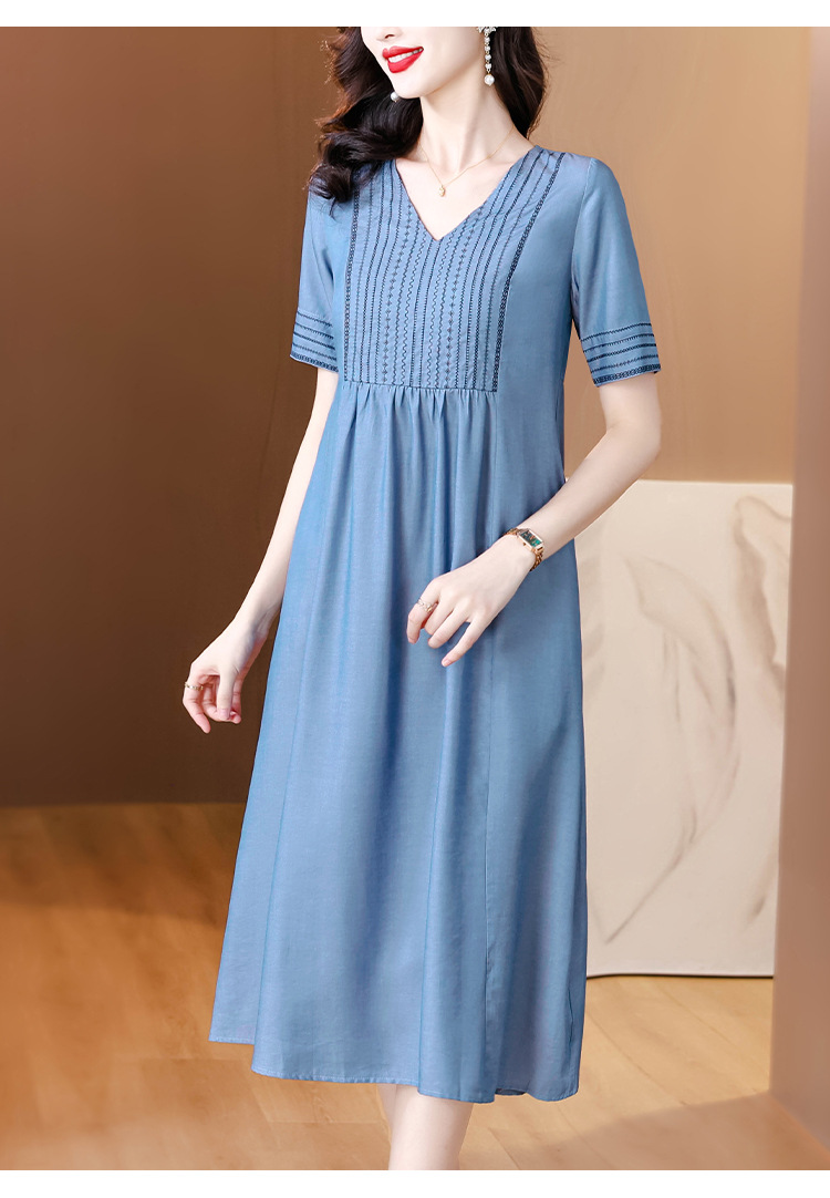 Yjr9520春夏vネック半袖ワンピース女性がゆったりとお腹を隠しています。