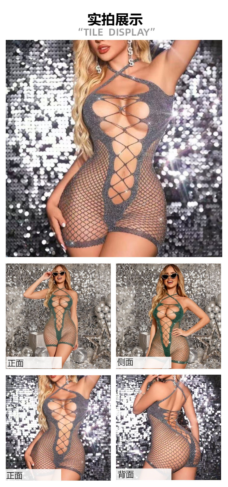 Amazonクロスボーダー新作セクシー誘惑網タイツセパレート下着セット女性用ビキニホットダイヤモンド三点メッシュ服