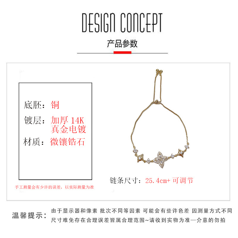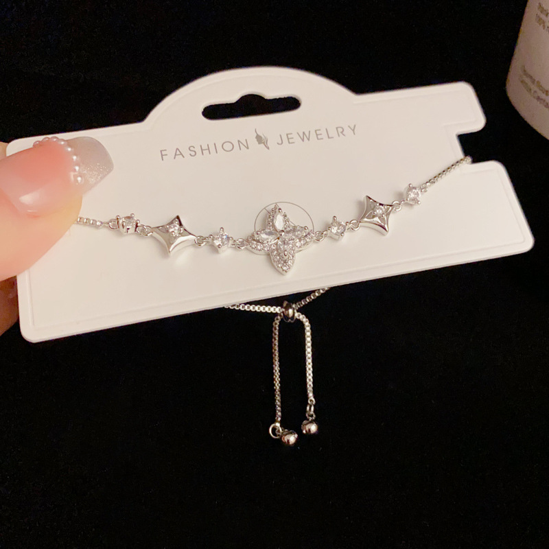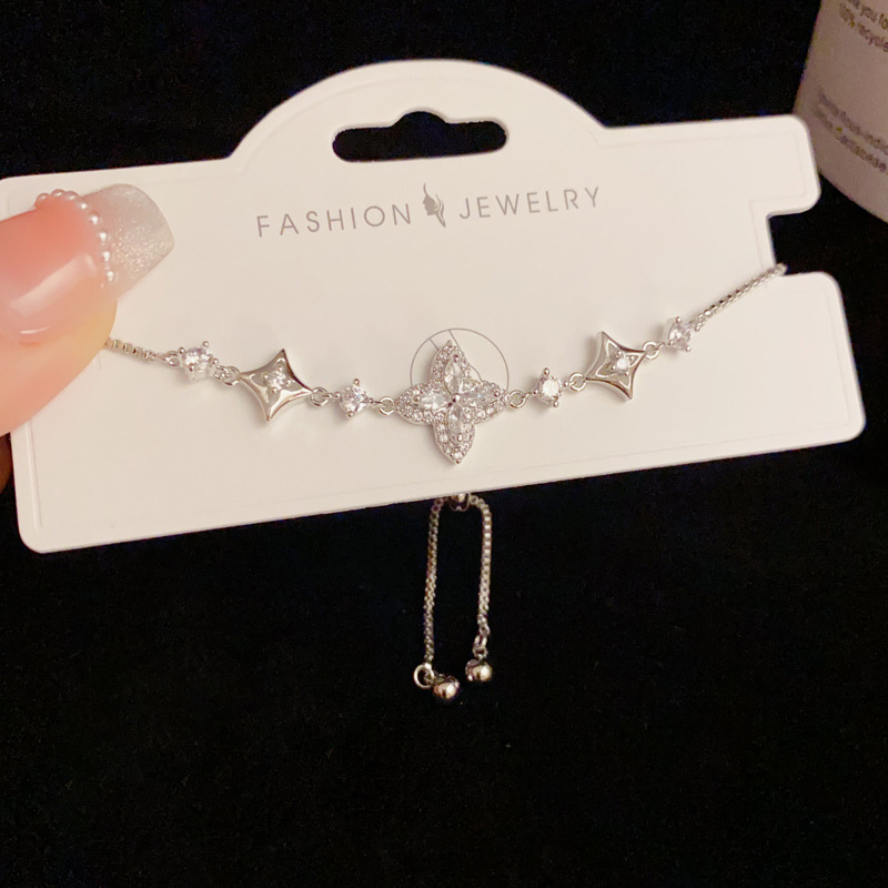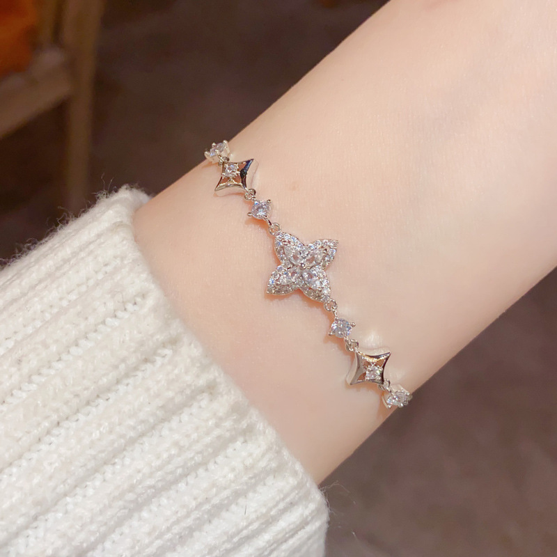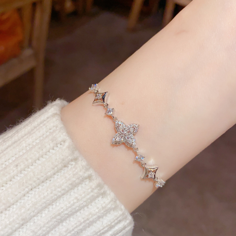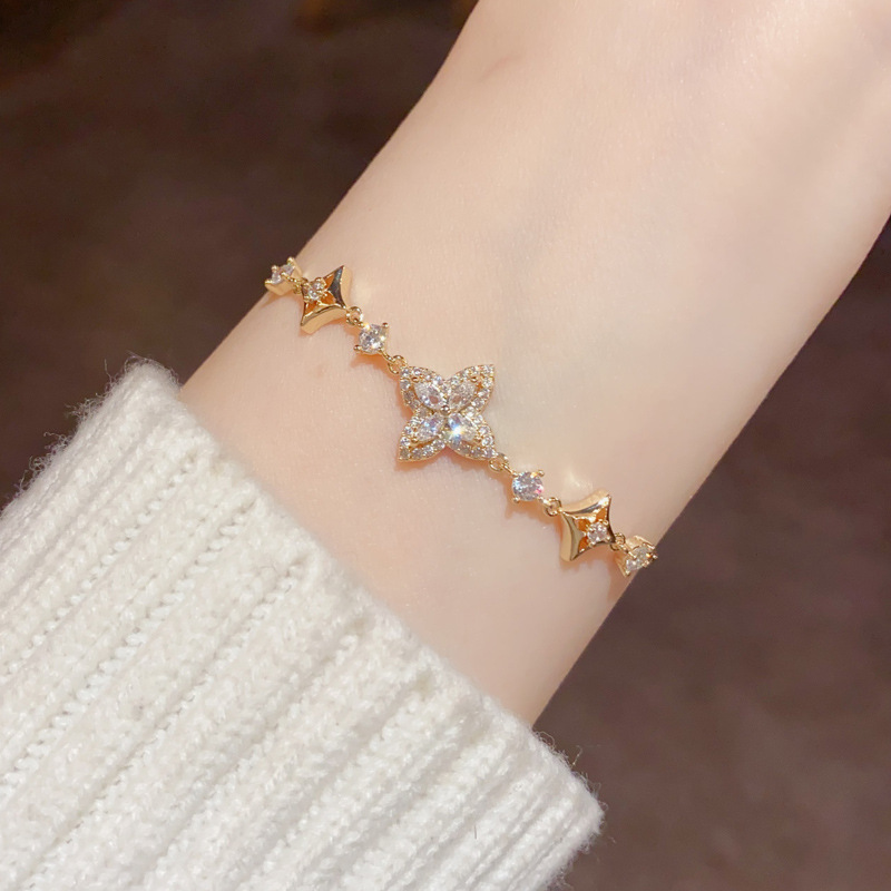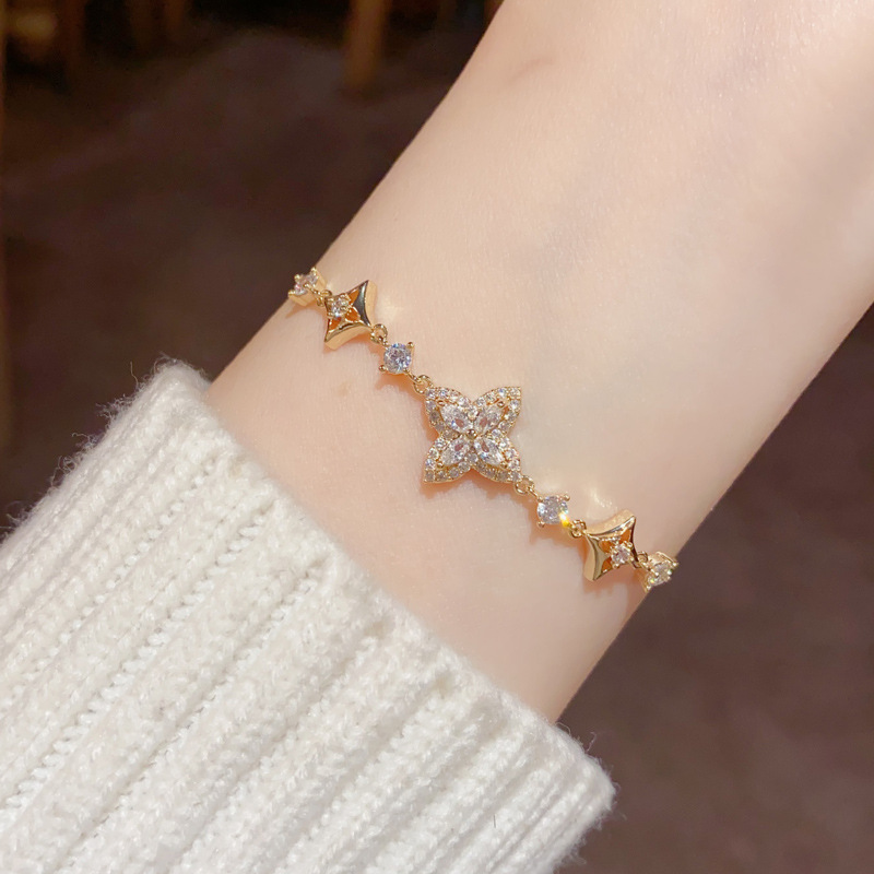 轻奢精致时尚百搭微镶锆石四叶花手链女气质日常通勤超闪手饰批发