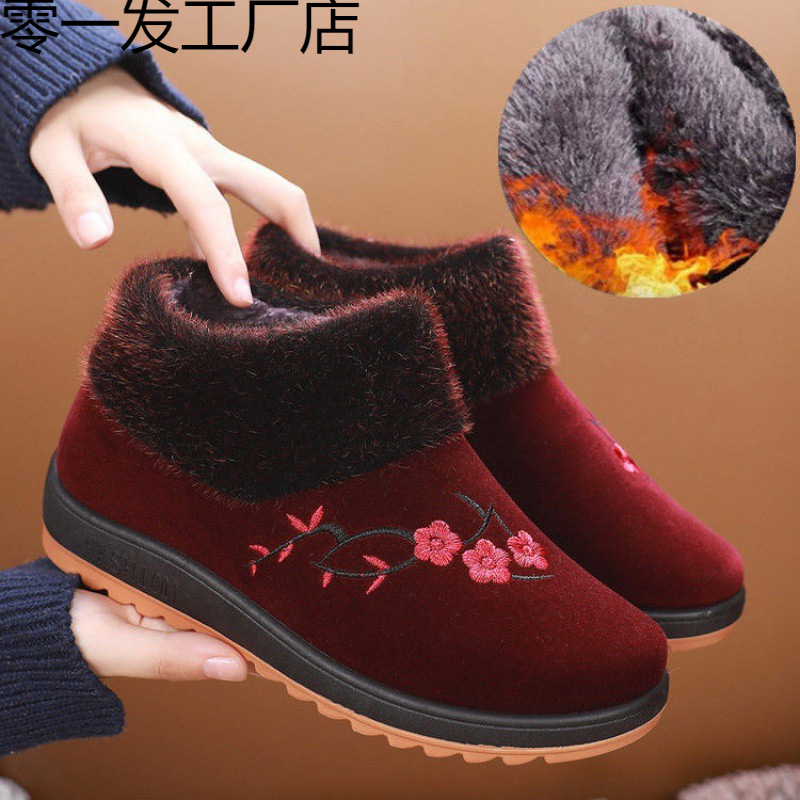 牛の筋肉の底の古い北京の布の靴の女性の靴の冬の高齢者の綿の靴の女性のベルベットの保温のおばあさんの綿の靴の柔らかい底の滑り止め