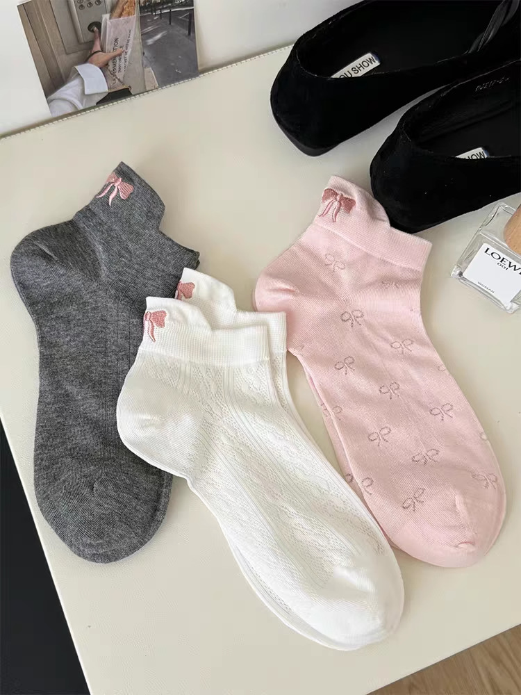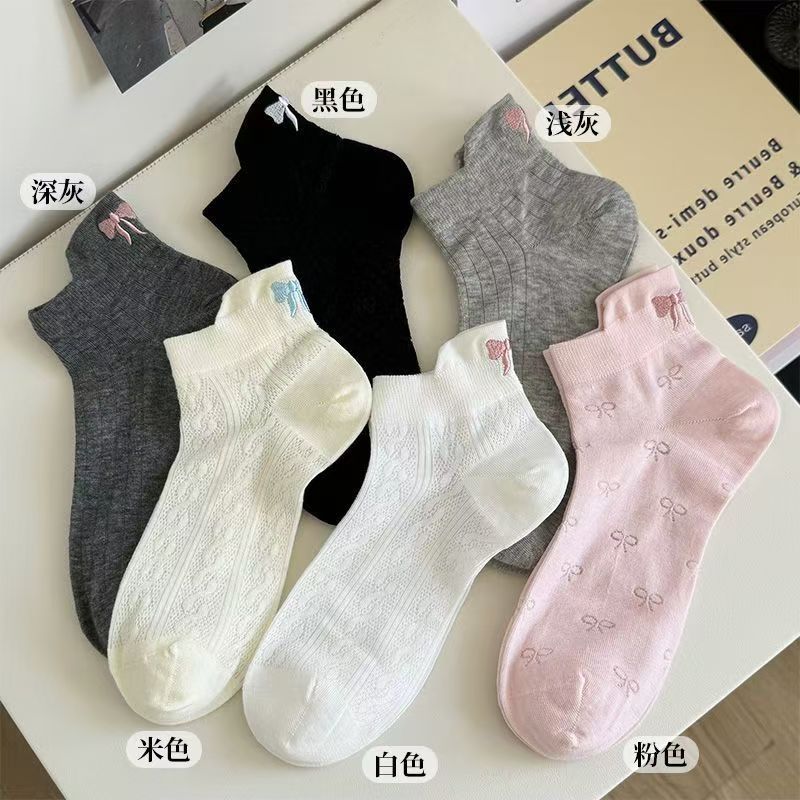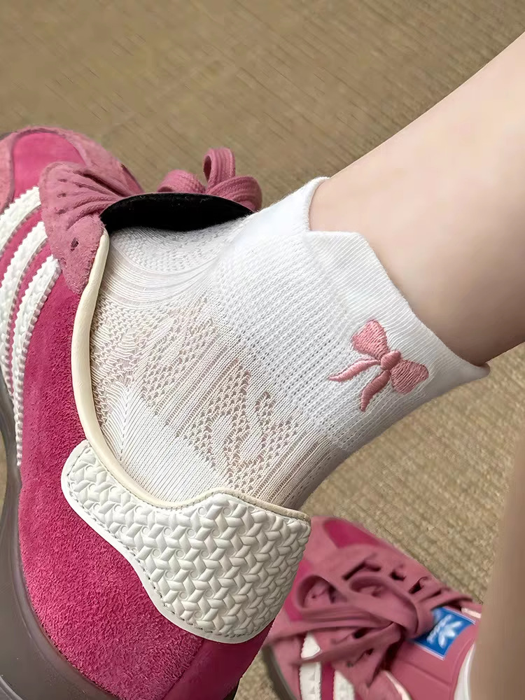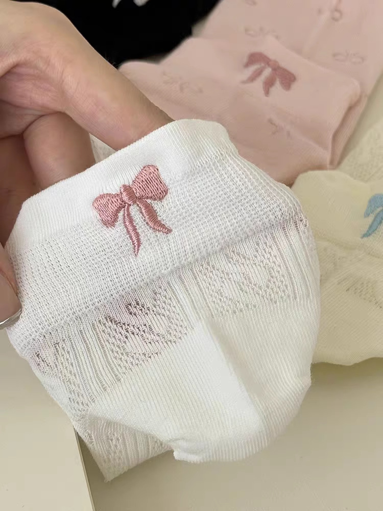 夏の新しい薄い女性の靴下メッシュ通気性刺繍弓スポーツ韓国語版イントレンディな靴下女性の靴下