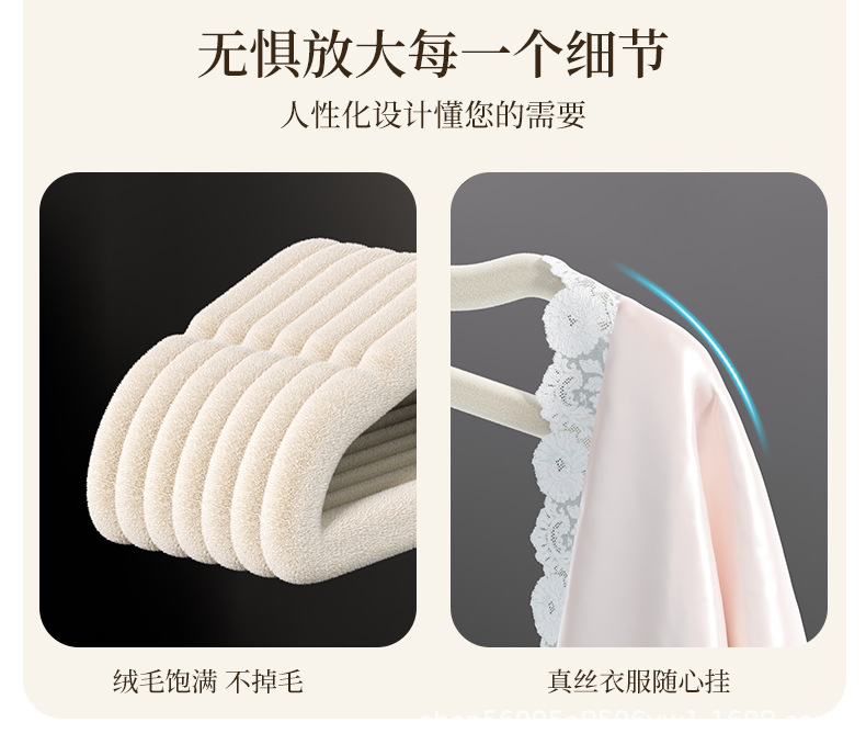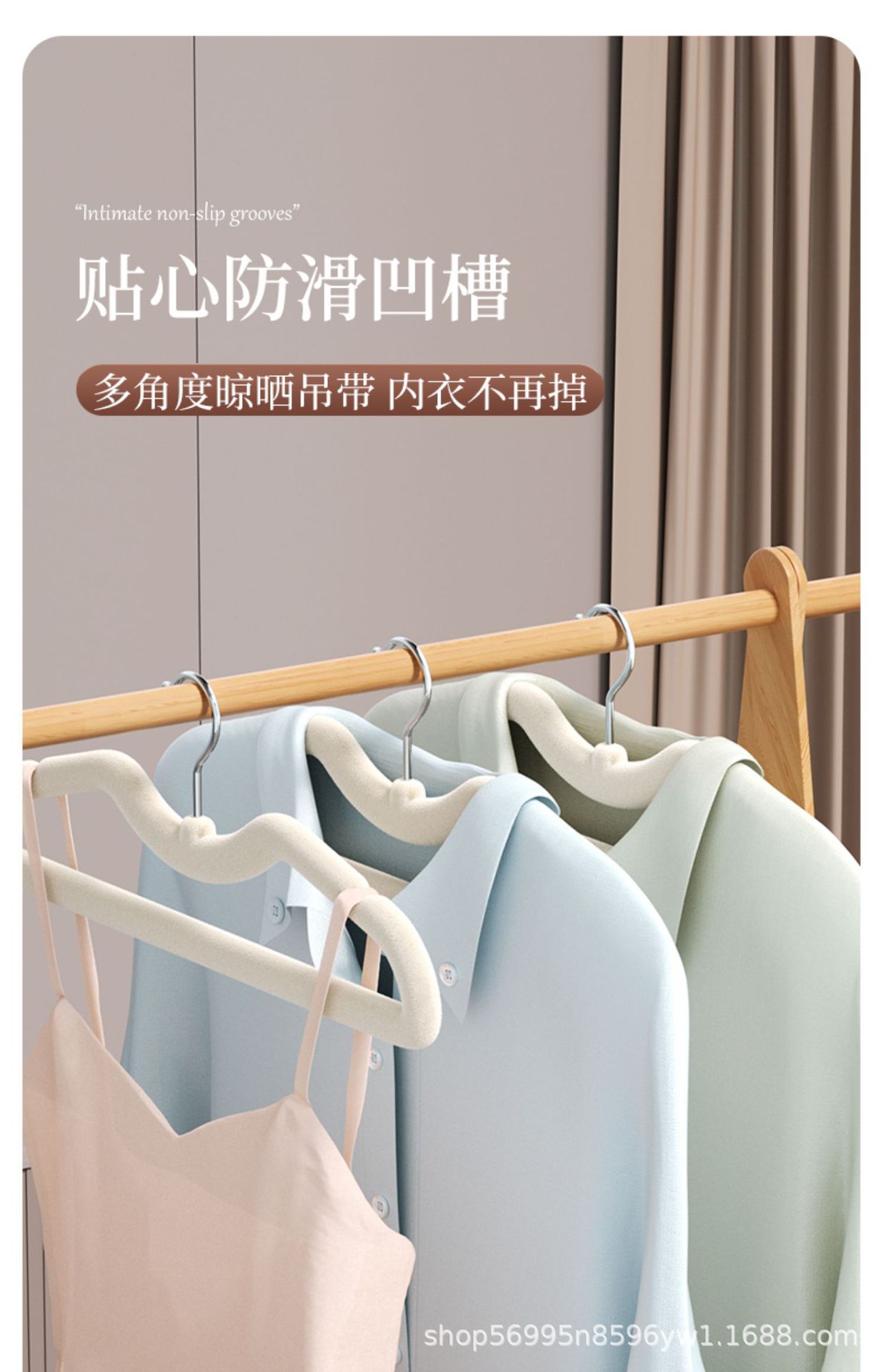 首の短い植毛ハンガー家庭用タンスに服を掛けて滑り止めをします。