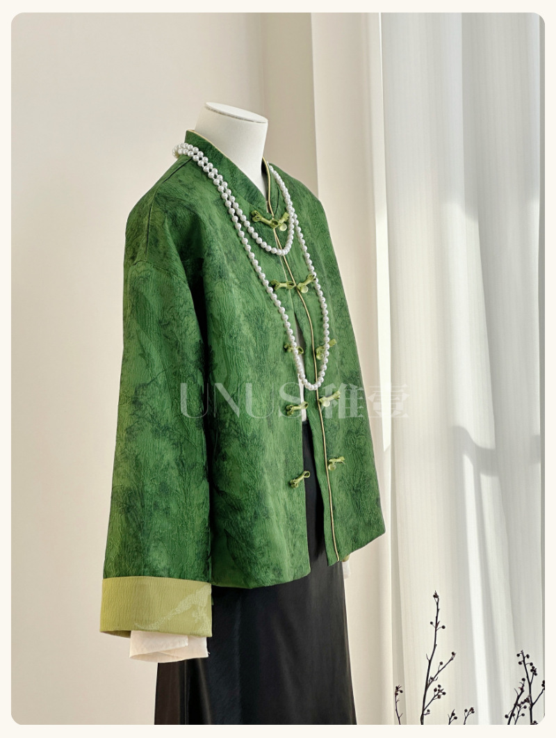 UNUS稚壱立体ジャカード盤ボタン復古端正大気唐装新中国式コート国風先祖母緑白