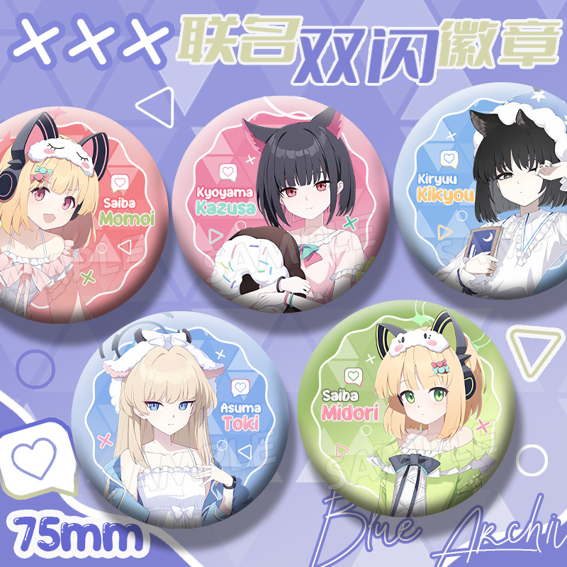 蔚蓝档案罗森联名联动周边桔梗时绿周边75mm双闪大徽章谷子痛包
