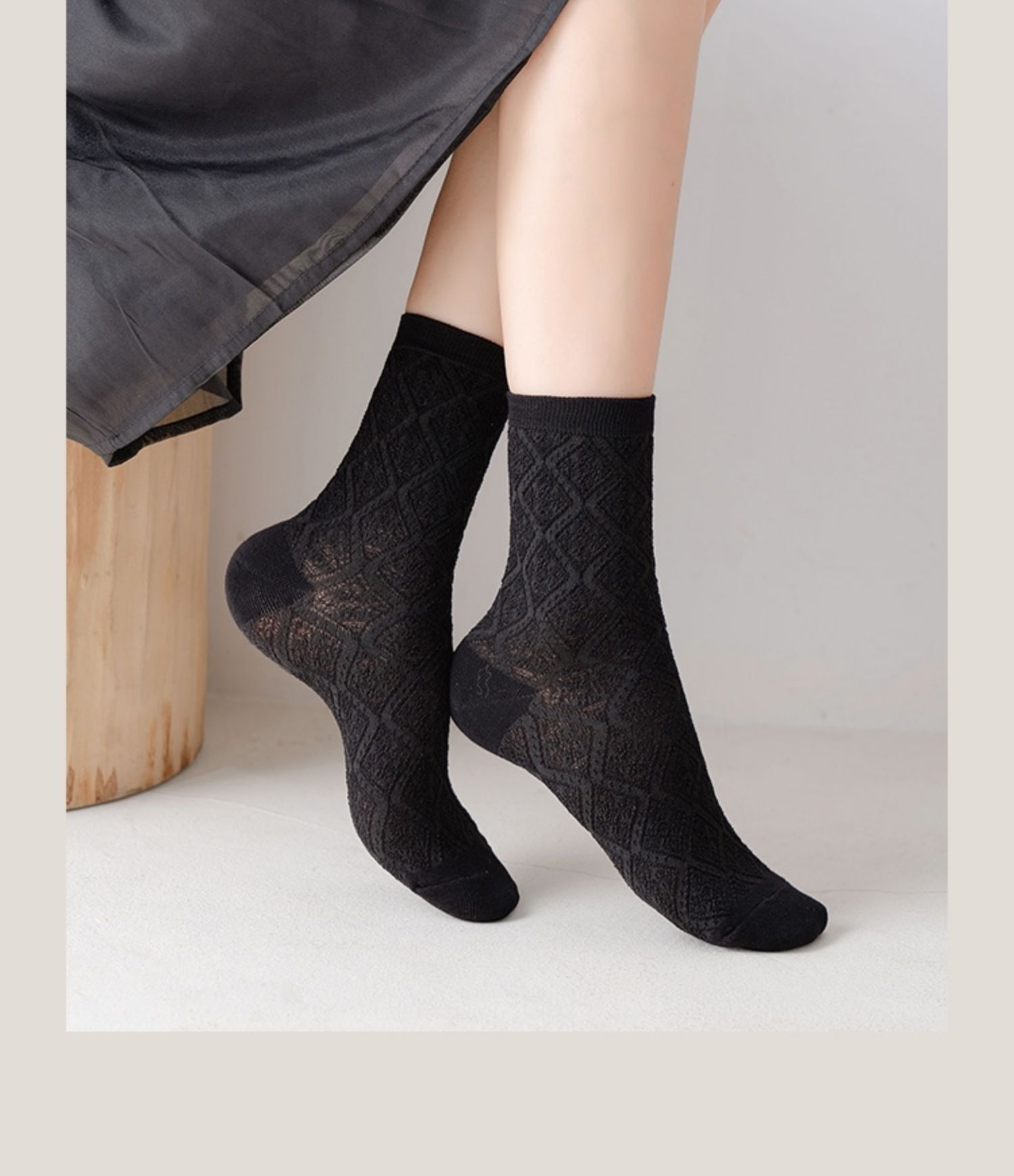 氷糸水晶靴下女性夏薄い透明ガラスストッキング中筒靴下綿底レース網糸春夏ソックス