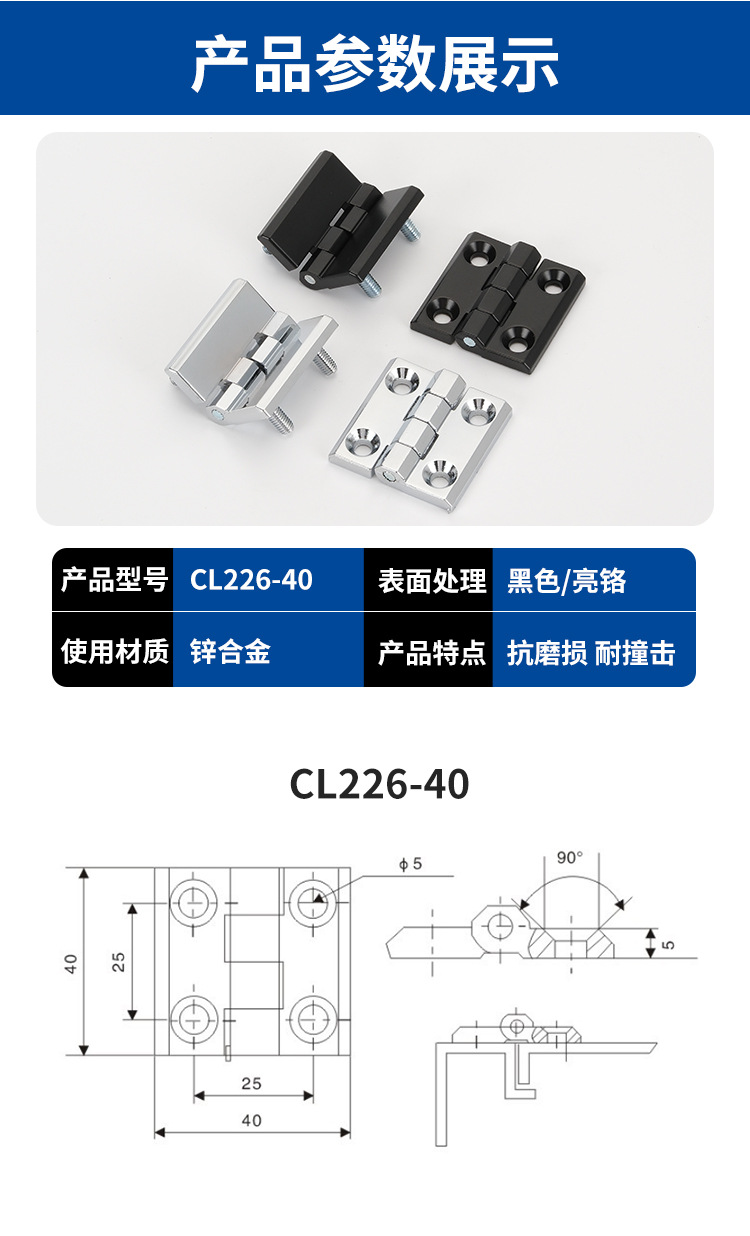 加厚不锈钢合页配电箱机械设备柜门平开CL226锌合金重型4050铰链